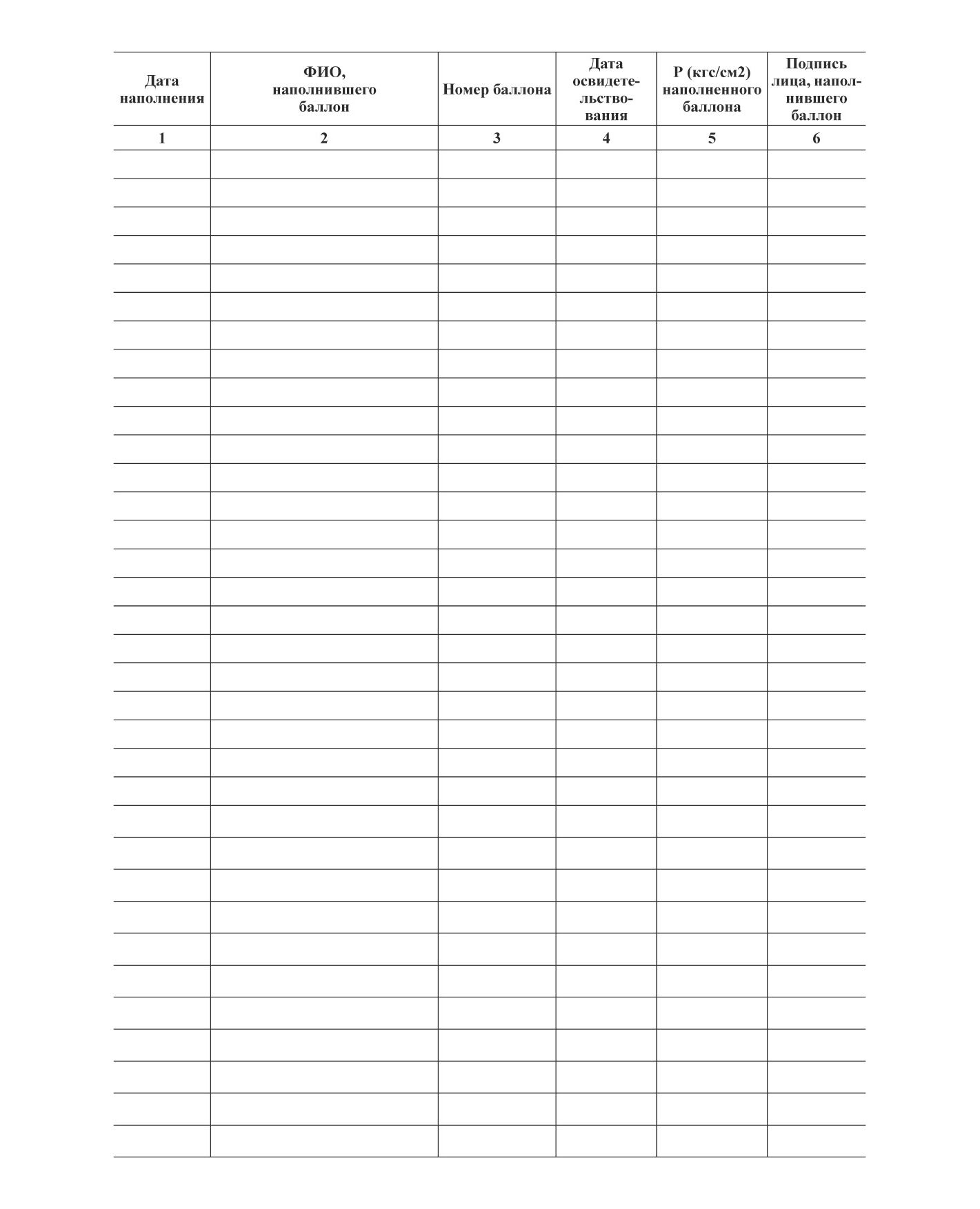 Журнал наполнения кислородных баллонов (прошитый, 100 страниц)