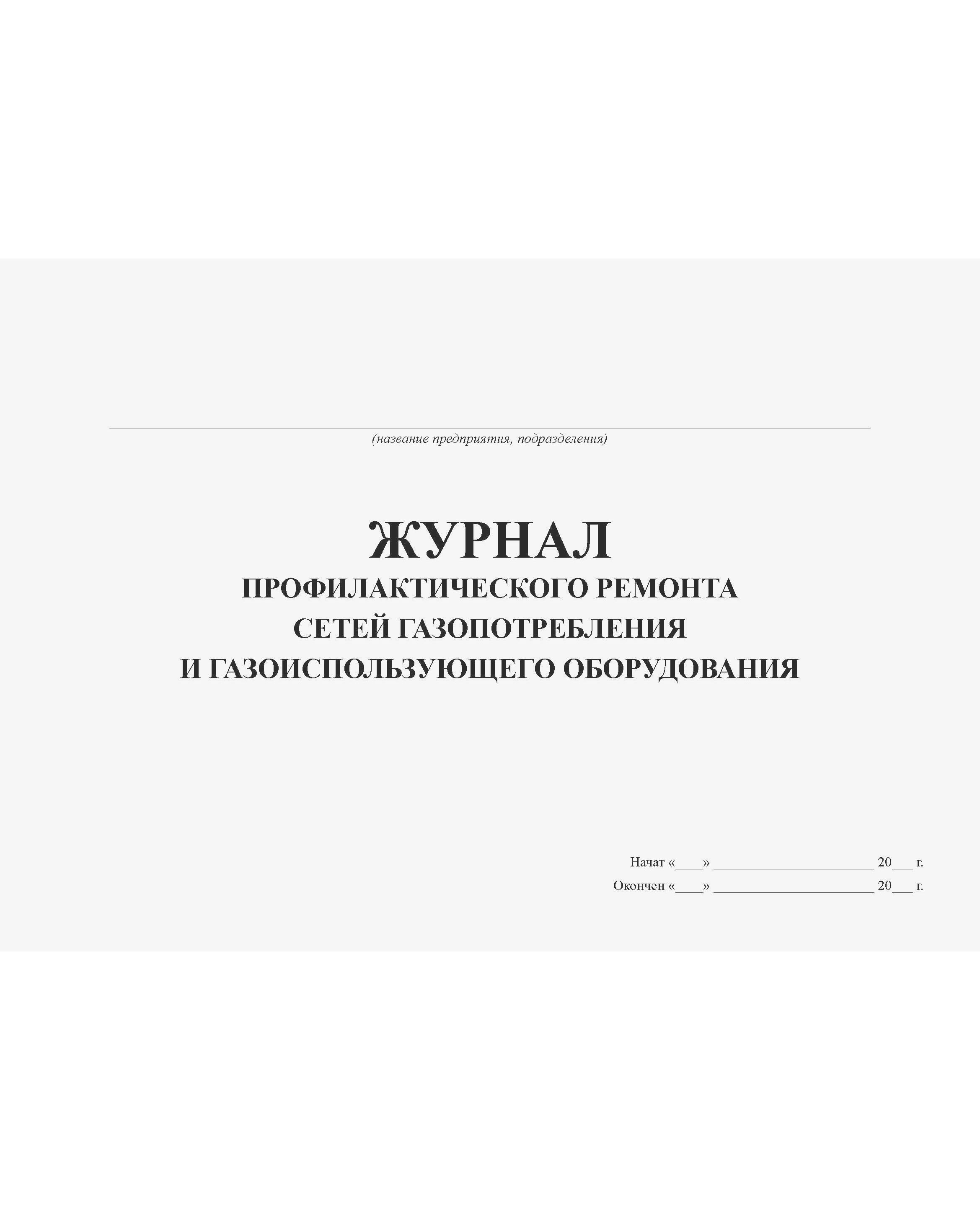 Журнал профилактического ремонта сетей газопотребления и газоиспользующего оборудования (100 стр., прошитый, альбомный)