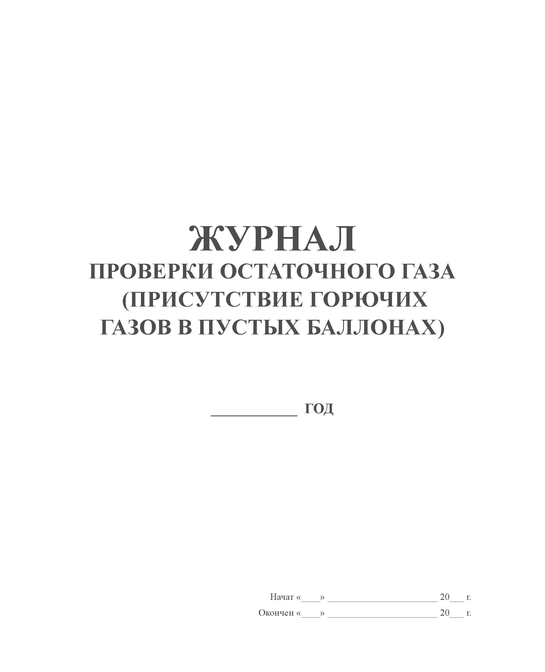 Журнал проверки остаточного газа (присутствие горячих газов в пустых баллонах) (прошитый, 100 страниц)