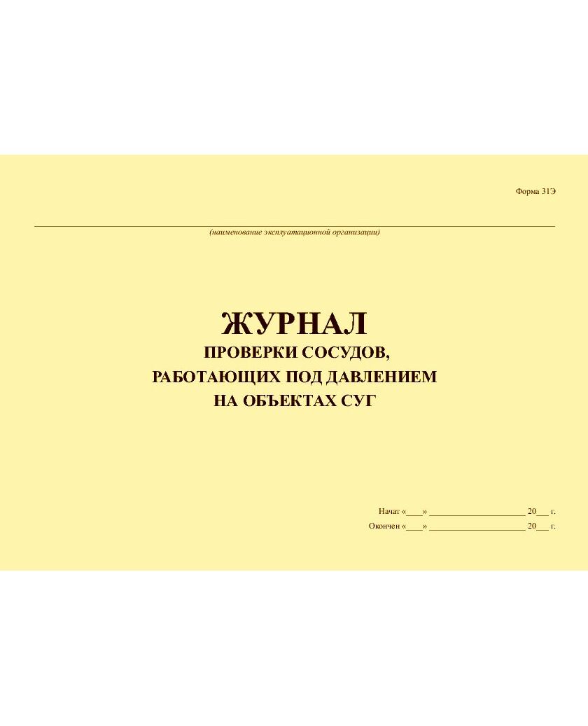 Журнал проверки сосудов, работающих под давлением на объектах СУГ. Форма 31Э, утв. Приказом Минэнерго РФ от 27.06.2003 № 259