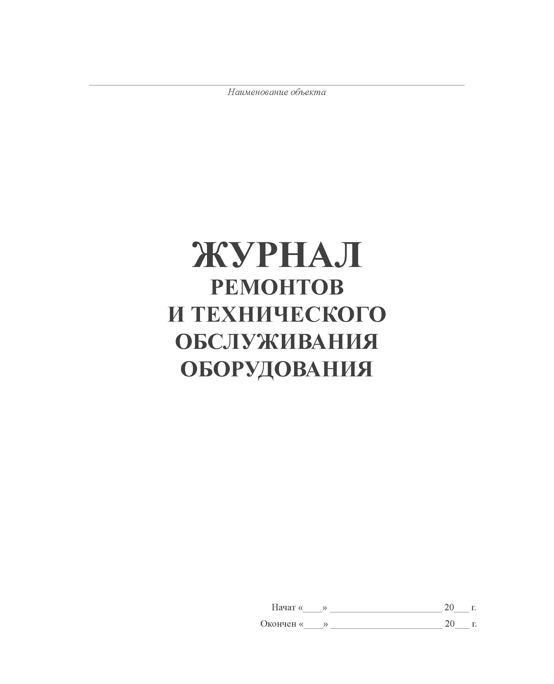 Журнал ремонтов и технического обслуживания оборудования (100 стр, прошитый)