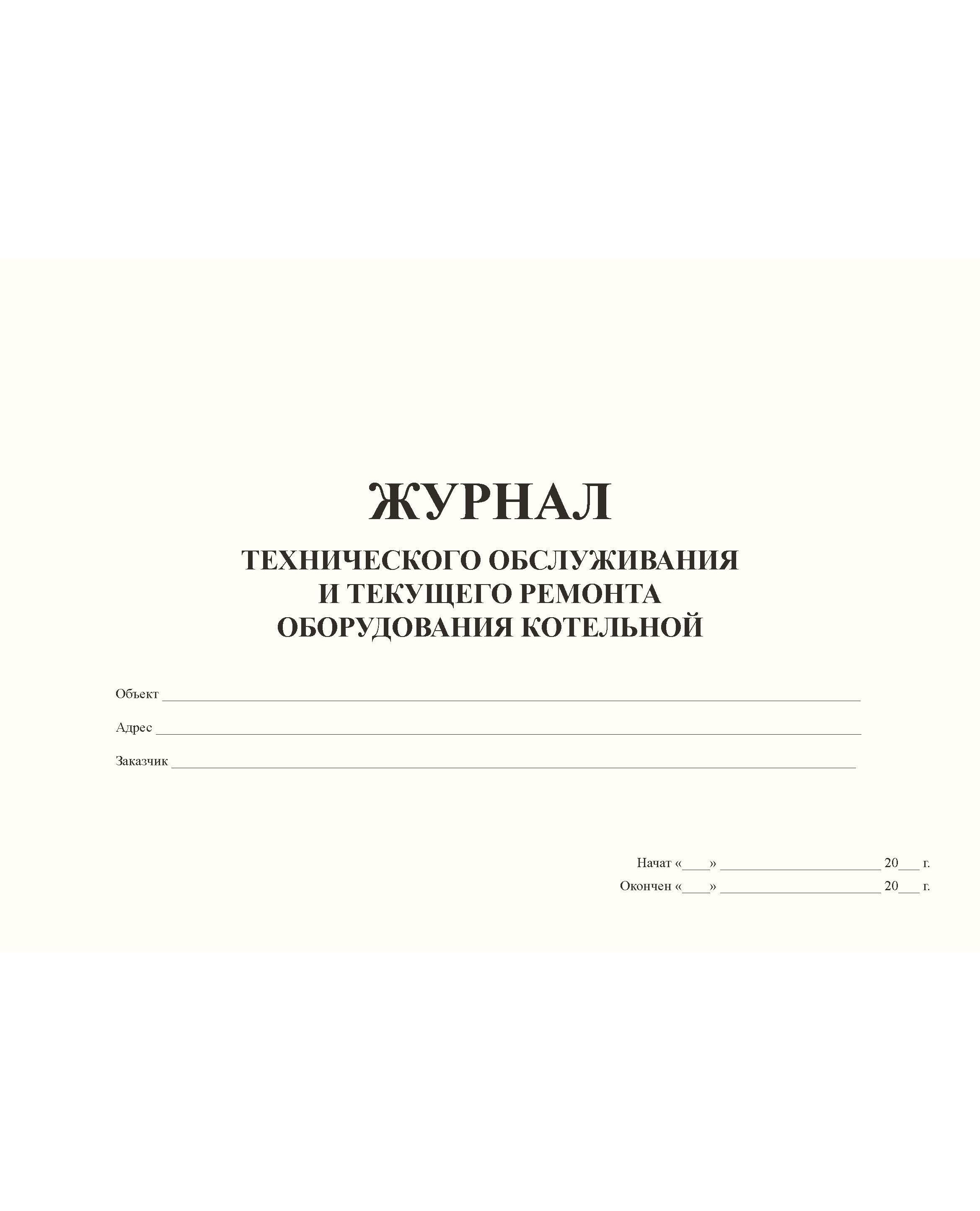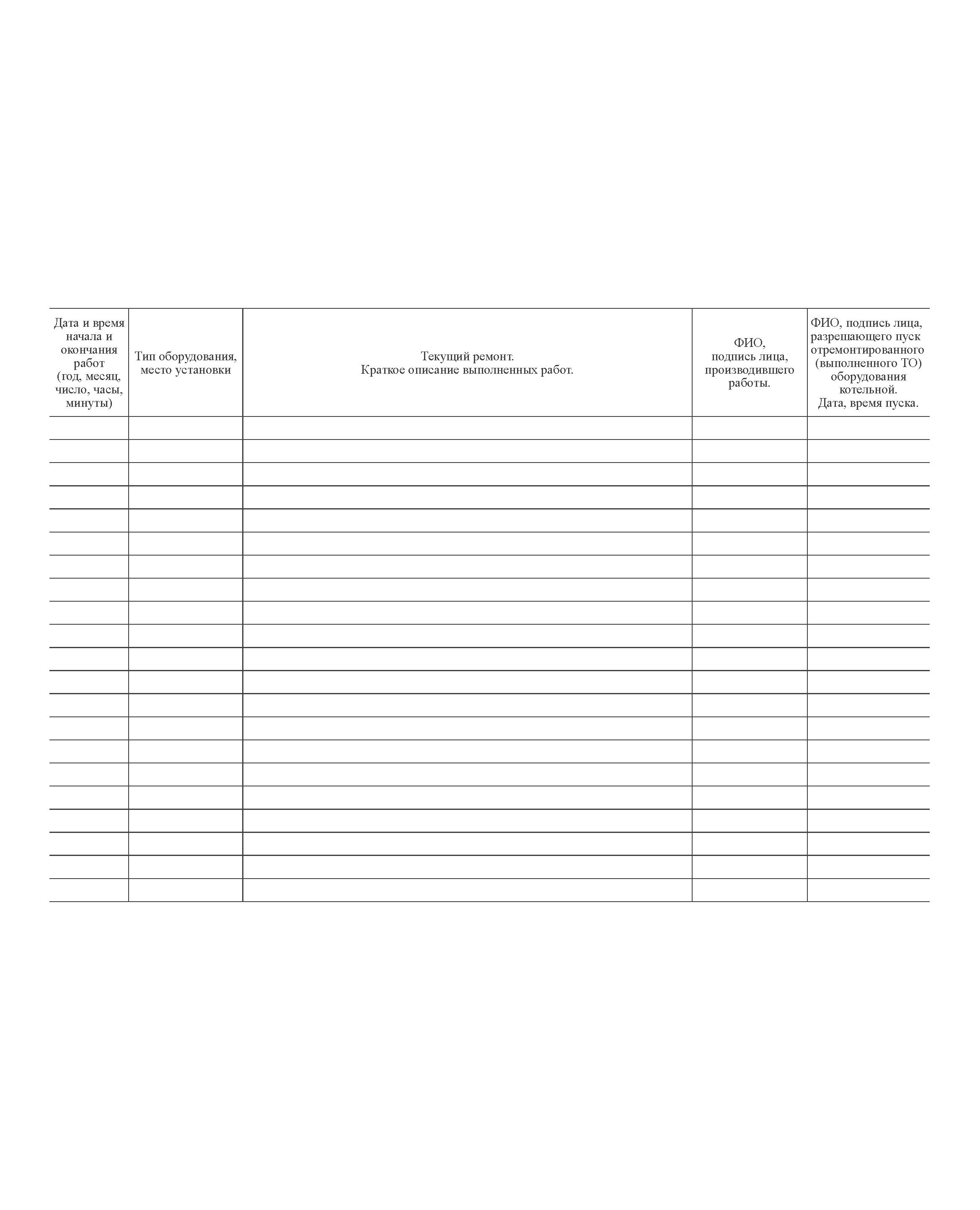 Журнал технического обслуживания и текущего ремонта оборудования котельной (прошитый, 100 страниц)