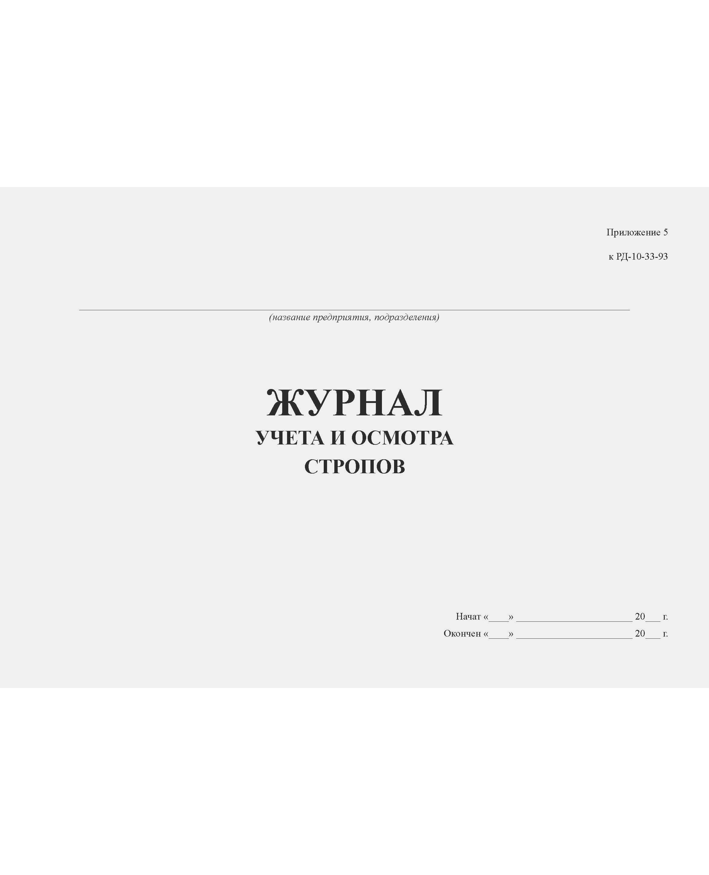 Журнал учета и осмотра стропов (Прил. № 5 к РД 10-33-93) (прошитый, 100 страниц)