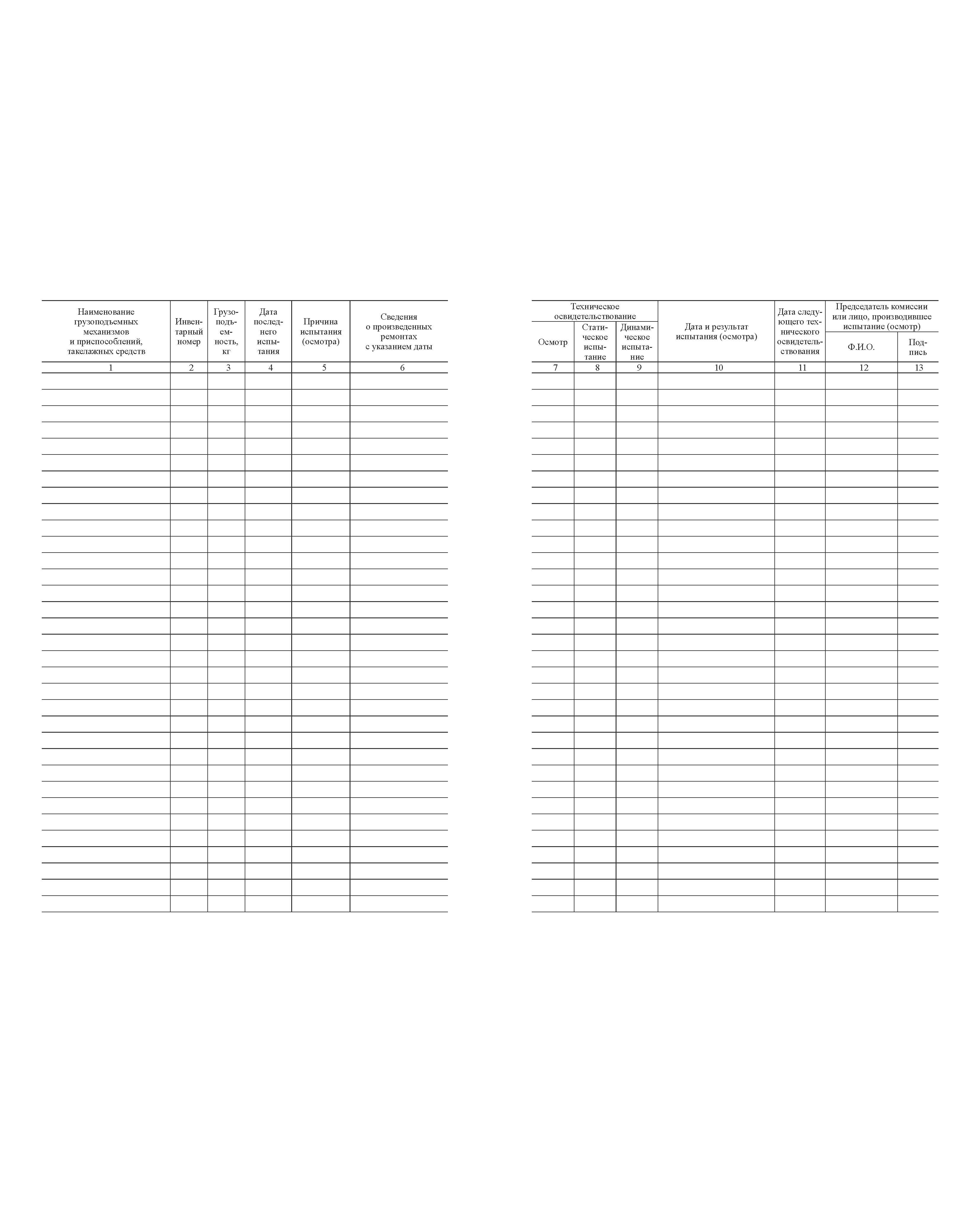 Журнал учета и осмотра такелажных средств, механизмов и приспособлений. (Приложение №5 к Правилам безопасности при работе с инструментом и приспособлениями. РД 34.03.204) (прошитый, 100 страниц)