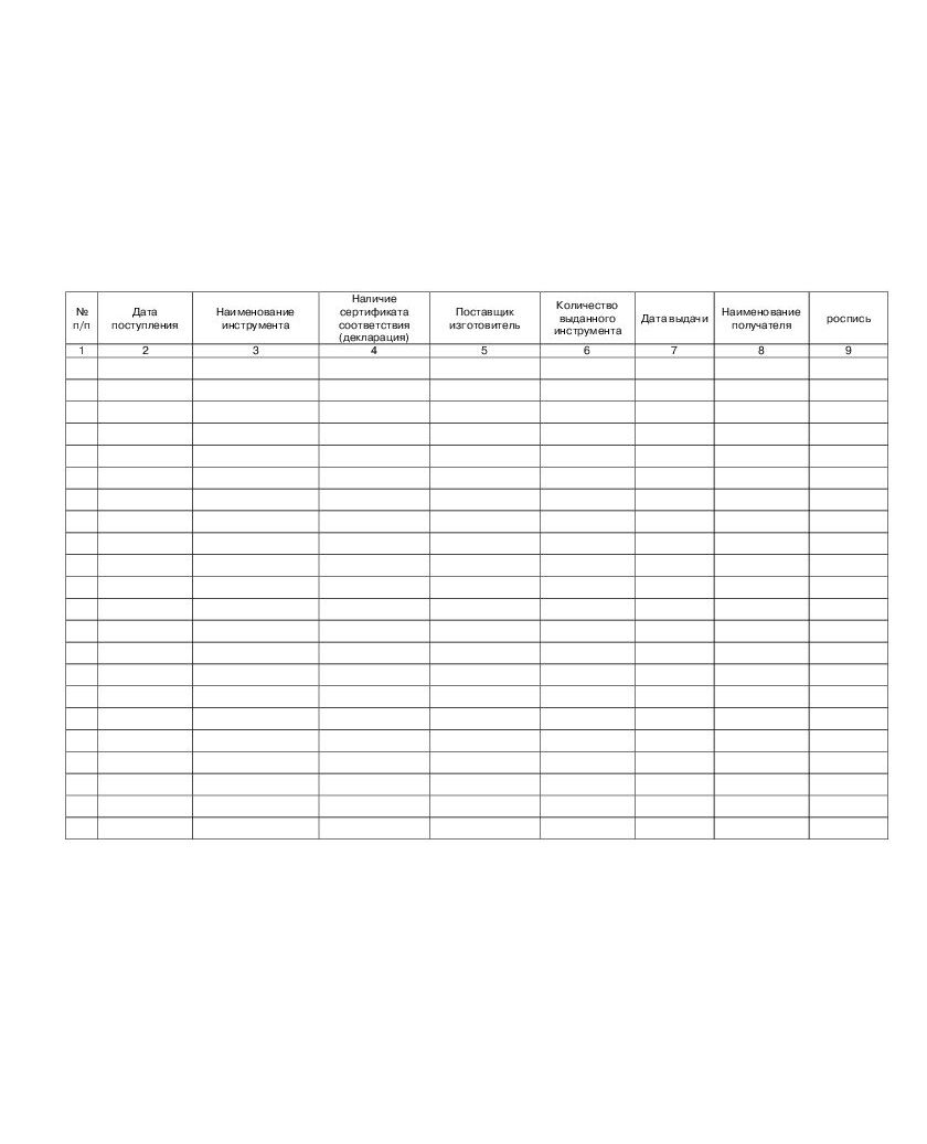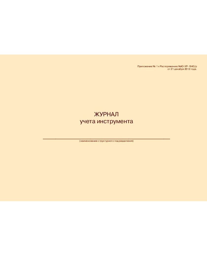 Журнал учета инструмента (для структурного подразделения). Приложение № 1 к Распоряжению Ю-УР-1643/р от 21.12.2012 (прошитый, 100 страниц)
