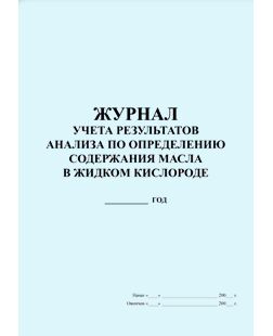 Журнал учета результатов анализа по определению содержания масла в жидком кислороде (прошитый, 100 страниц)