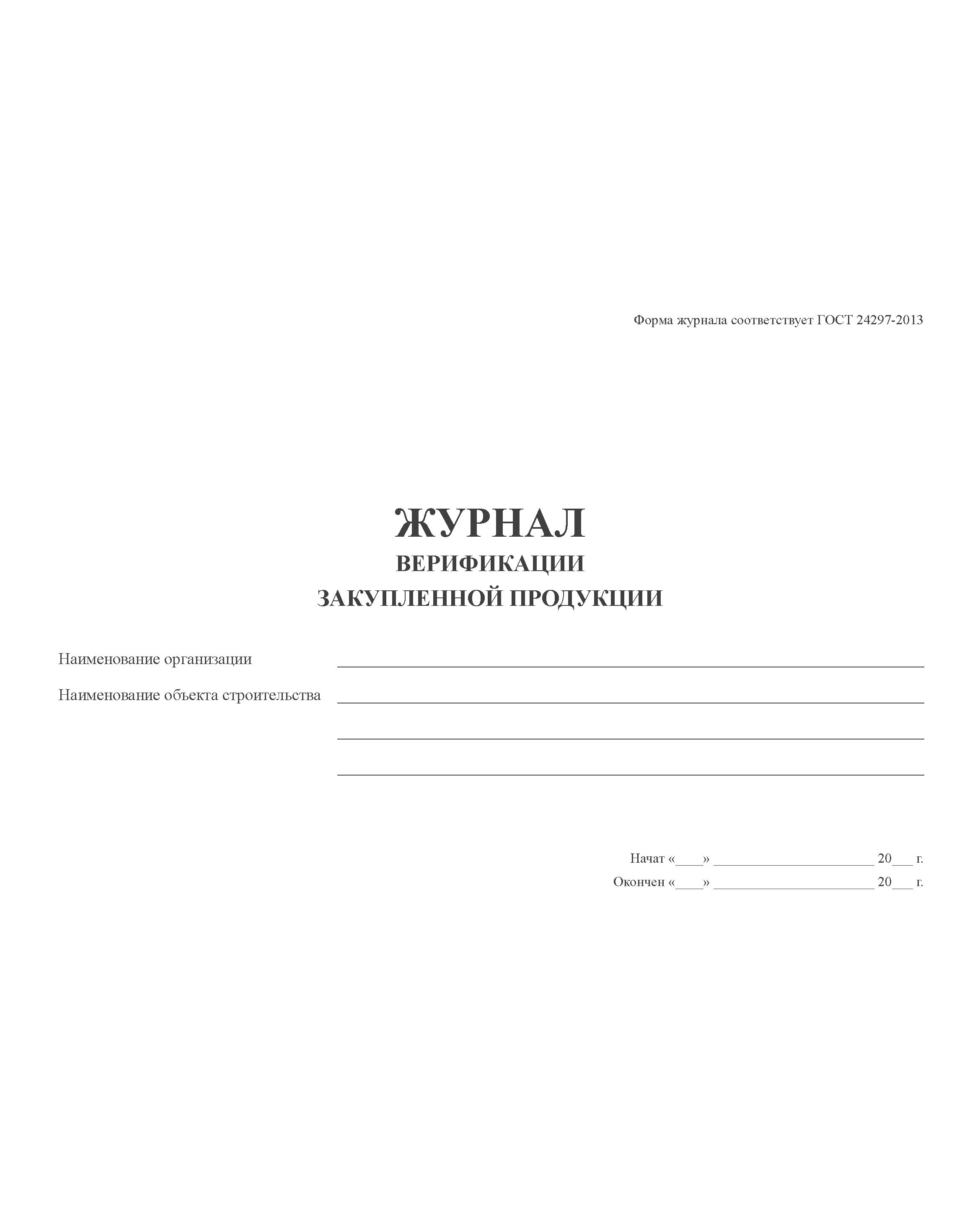 Журнал верификации закупленной продукции.Форма по ГОСТ 24297-2013 (100 стр., прошитый)