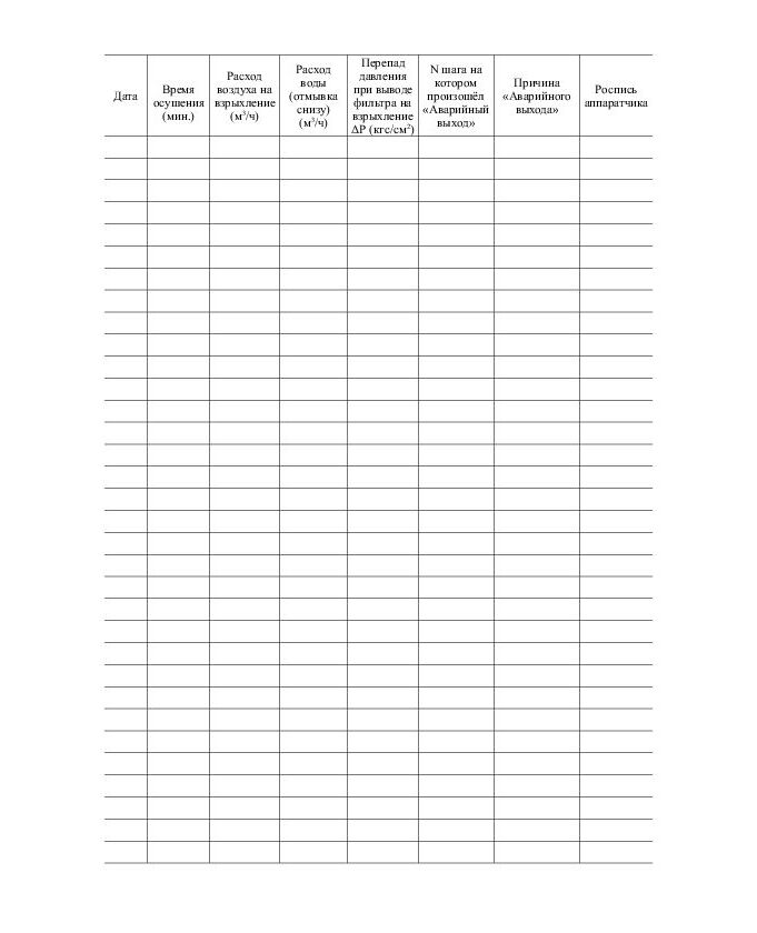 Журнал взрыхлений механических фильтров (книжный, прошитый, 100 страниц)