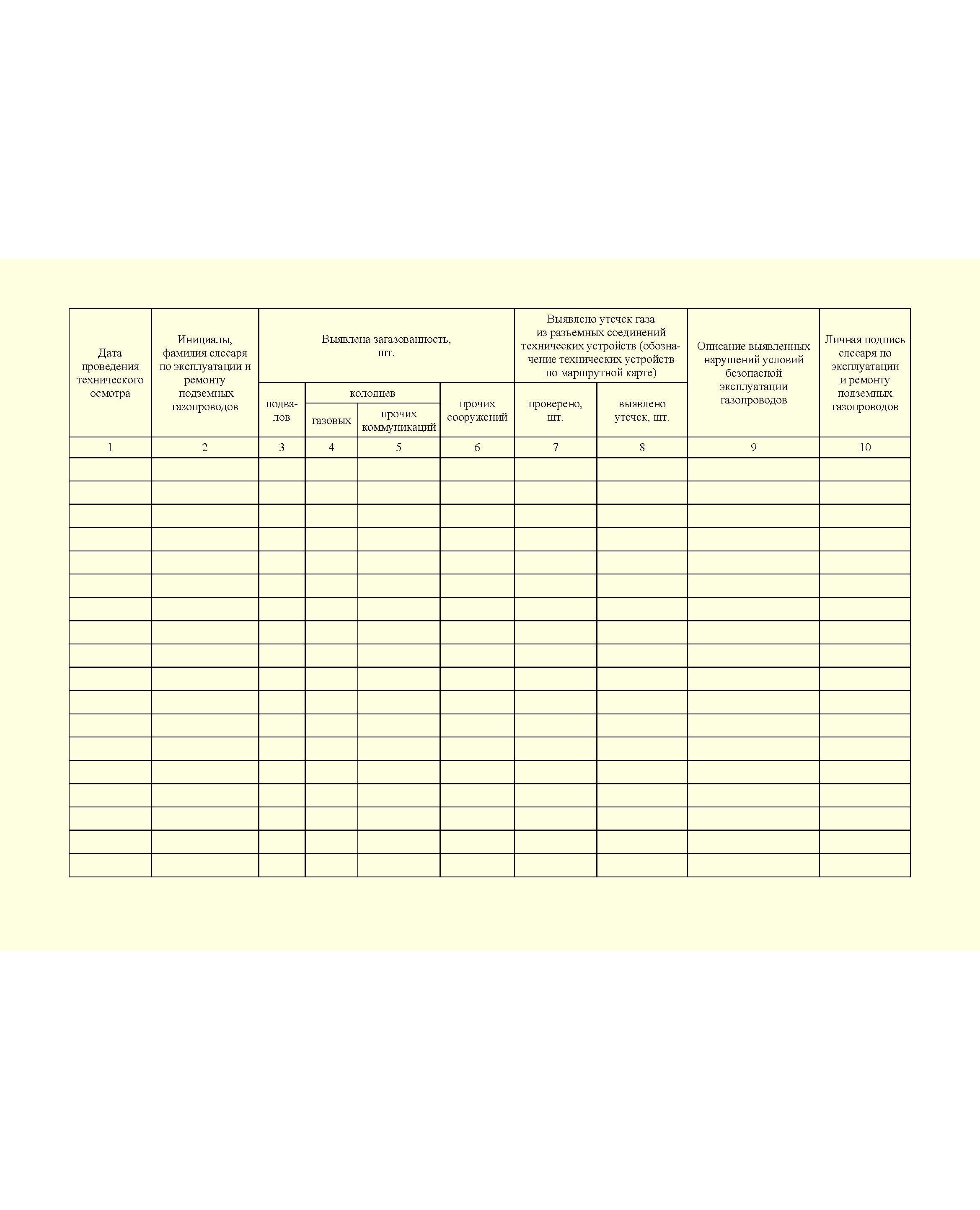 Эксплуатационный журнал газопроводов по маршруту. Приложение И к ГОСТ 34741-2021. Системы газораспределительные. Требования к эксплуатации сетей газораспределения природного газа (альбомный, прошитый, 100 стр.)