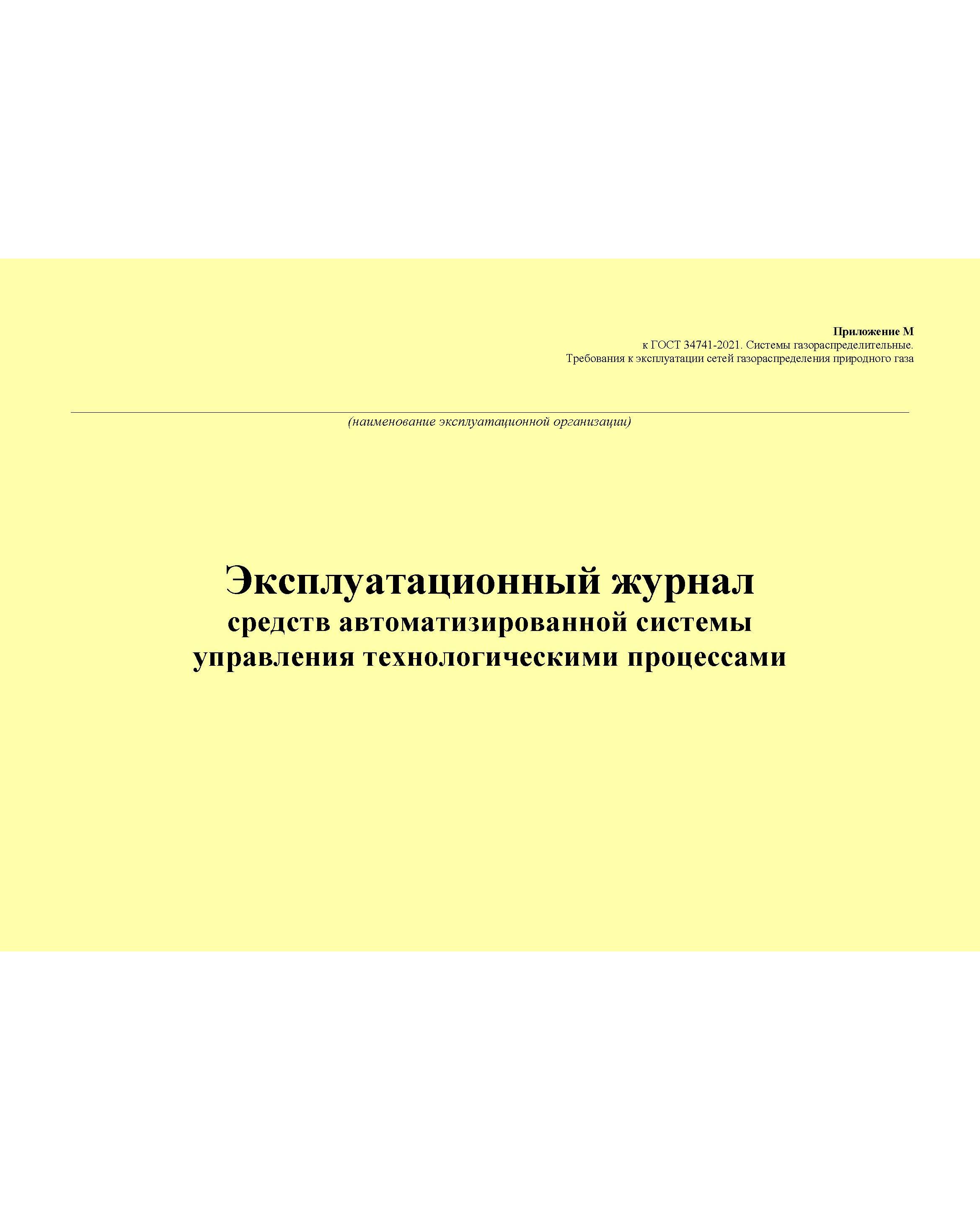 Главная/Журналы (Твердая, мягкая обложка, прошитые)/Объекты газораспределения/Эксплуатационный журнал средств автоматизированной системы управления технологическими процессами. Приложение М к ГОСТ 34741-2021. Системы газораспределительные. Требования к эксплуатации сетей газораспределения природного газа (альбомный, прошитый, 100 стр.)