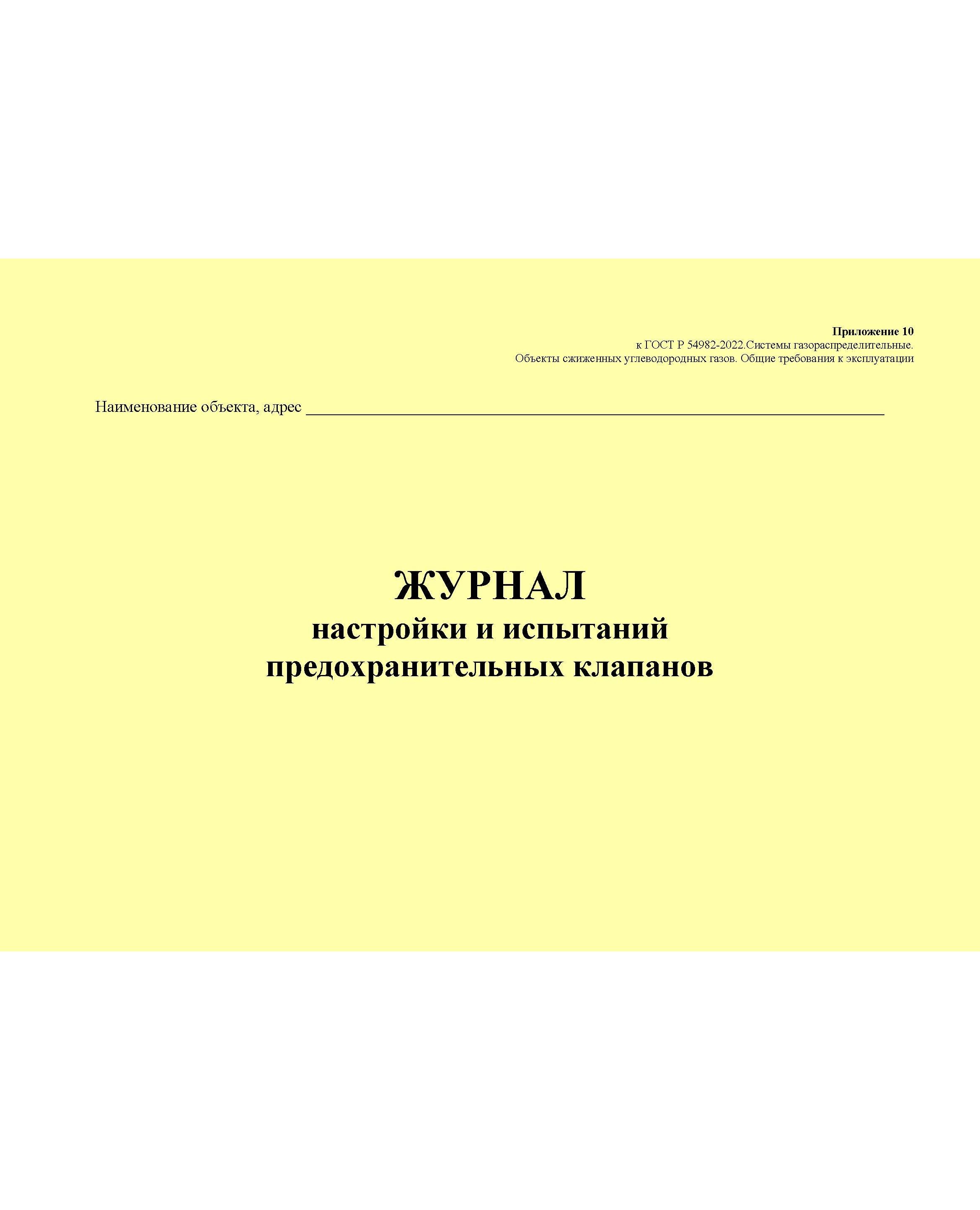Главная/Журналы (Твердая, мягкая обложка, прошитые)/Объекты газораспределения/Журнал настройки и испытаний предохранительных клапанов. Приложение 10 к ГОСТ Р 54982-2022. Системы газораспределительные. Объекты сжиженных углеводородных газов. Общие требования к эксплуатации (альбомный, прошитый, 100 стр.)