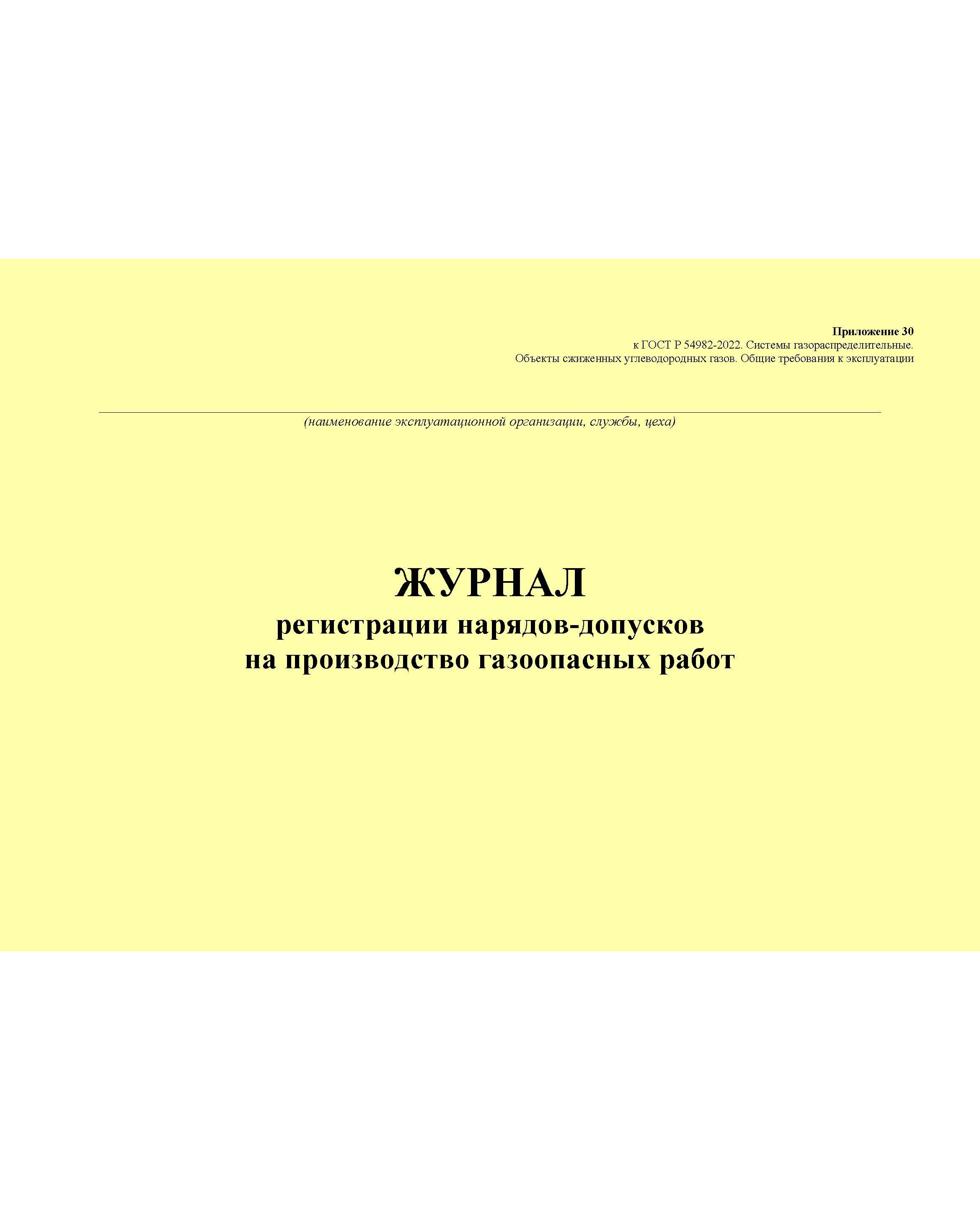 Главная/Журналы (Твердая, мягкая обложка, прошитые)/Объекты газораспределения/Журнал регистрации нарядов-допусков на производство газоопасных работ. Приложение 30 к ГОСТ Р 54982-2022. Системы газораспределительные. Объекты сжиженных углеводородных газов. Общие требования к эксплуатации (альбомный, прошитый, 100 стр.)