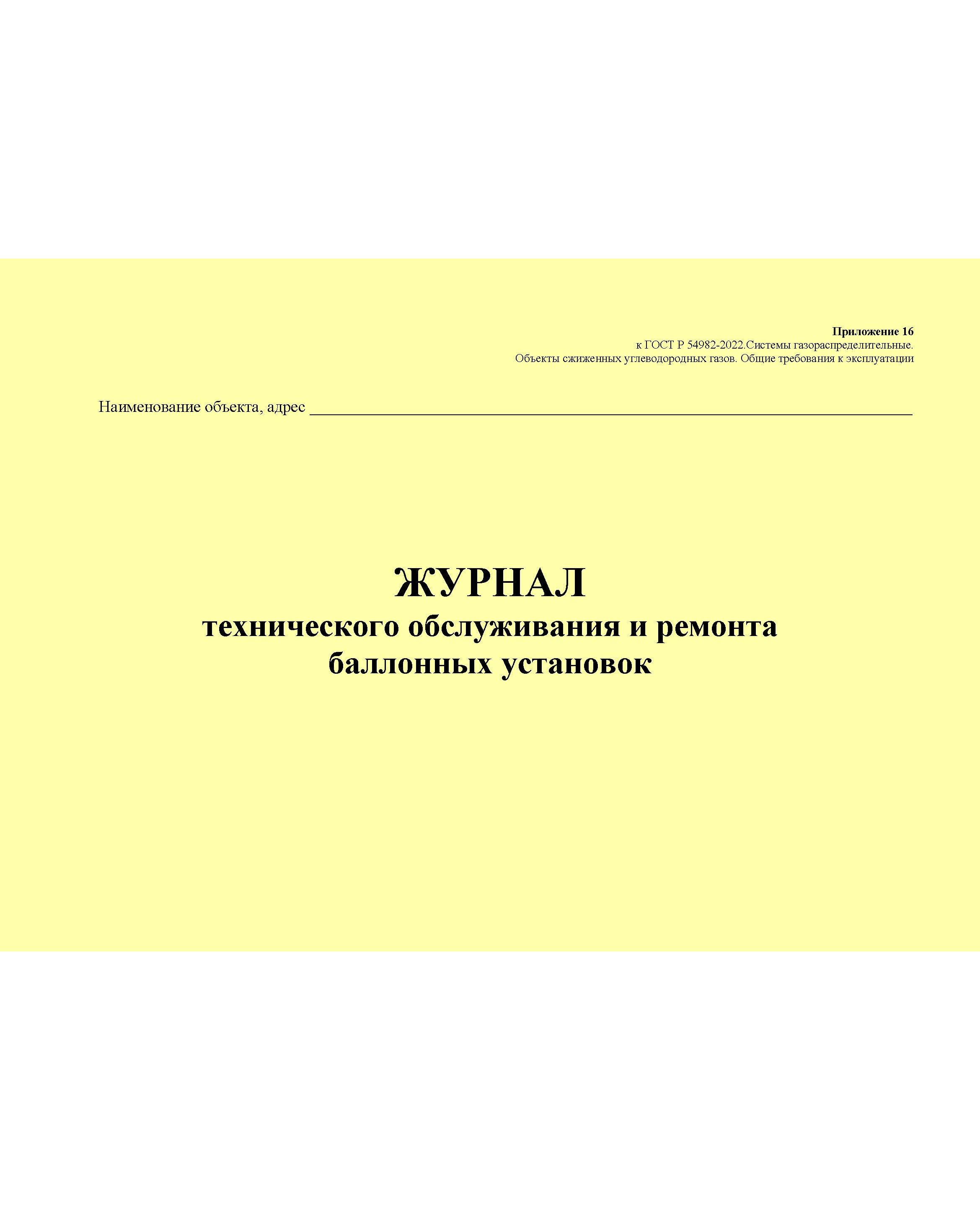 Главная/Журналы (Твердая, мягкая обложка, прошитые)/Объекты газораспределения/Журнал технического обслуживания и ремонта баллонных установок. Приложение 16 к ГОСТ Р 54982-2022. Системы газораспределительные. Объекты сжиженных углеводородных газов. Общие требования к эксплуатации (альбомный, прошитый, 100 стр.)