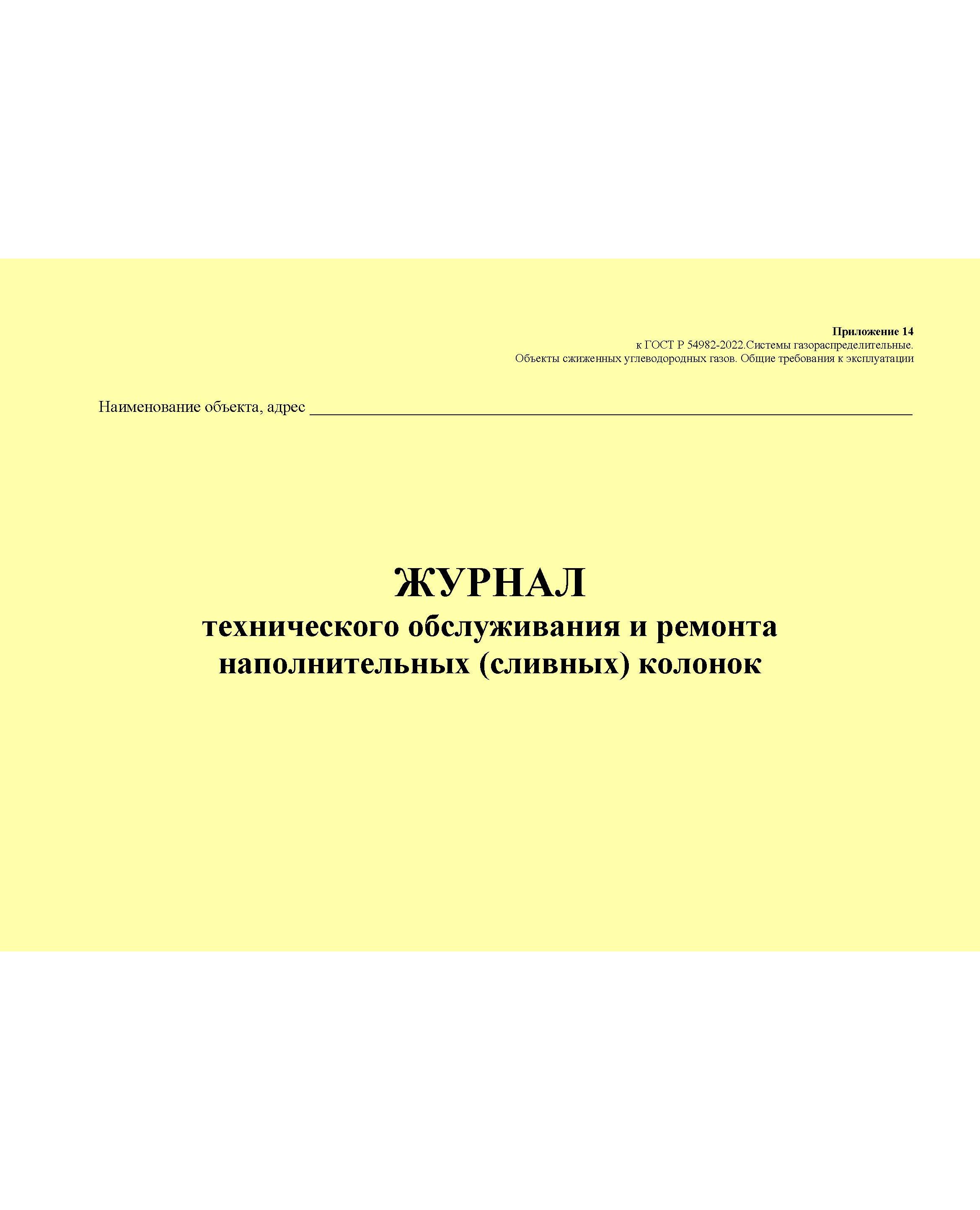 Главная/Журналы (Твердая, мягкая обложка, прошитые)/Объекты газораспределения/Журнал технического обслуживания и ремонта наполнительных (сливных) колонок. Приложение 14 к ГОСТ Р 54982-2022. Системы газораспределительные. Объекты сжиженных углеводородных газов. Общие требования к эксплуатации (альбомный, прошитый, 100 стр.)