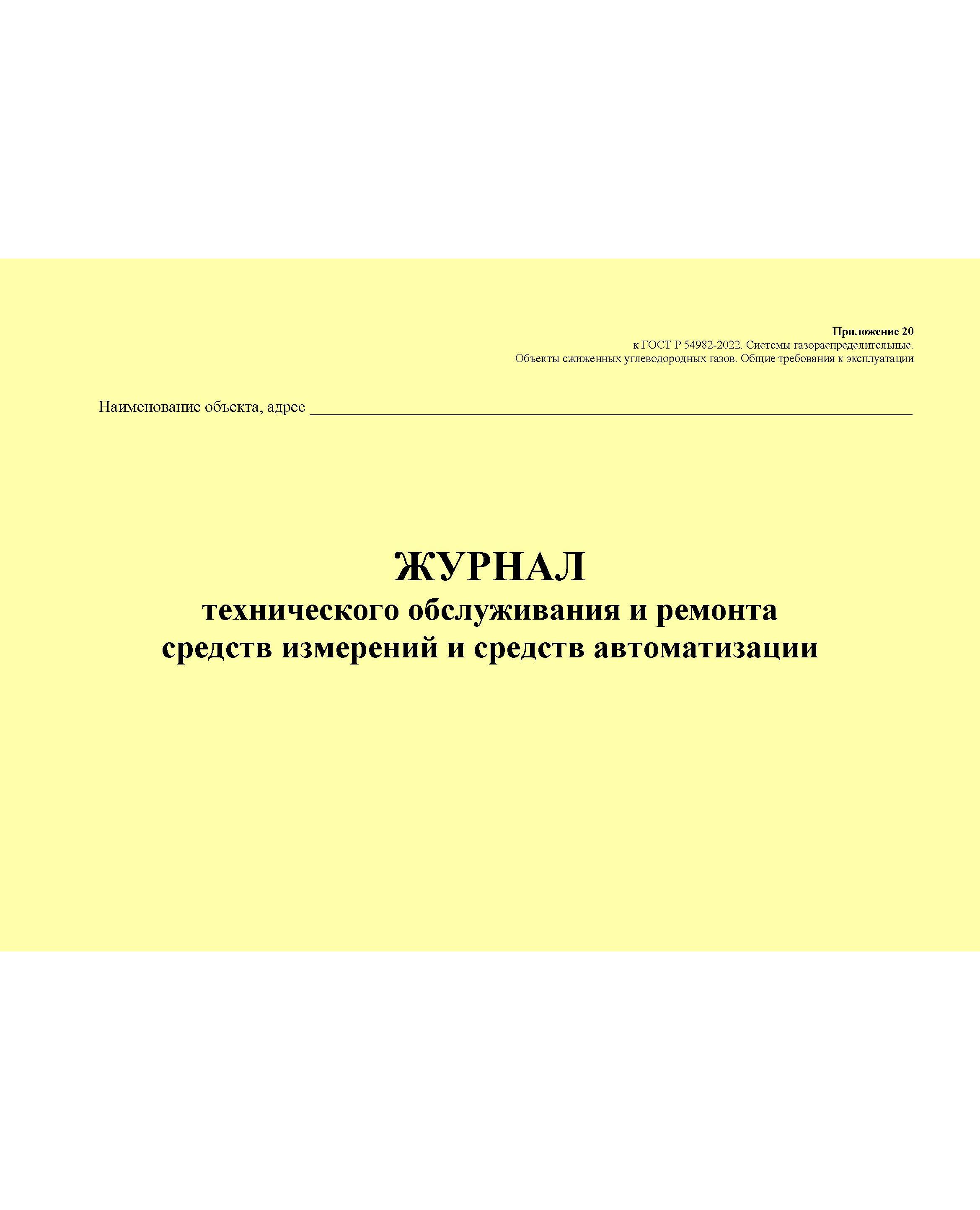 Главная/Журналы (Твердая, мягкая обложка, прошитые)/Объекты газораспределения/Журнал технического обслуживания и ремонта средств измерений и средств автоматизации. Приложение 20 к ГОСТ Р 54982-2022. Системы газораспределительные. Объекты сжиженных углеводородных газов. Общие требования к эксплуатации (альбомный, прошитый, 100 стр.)
