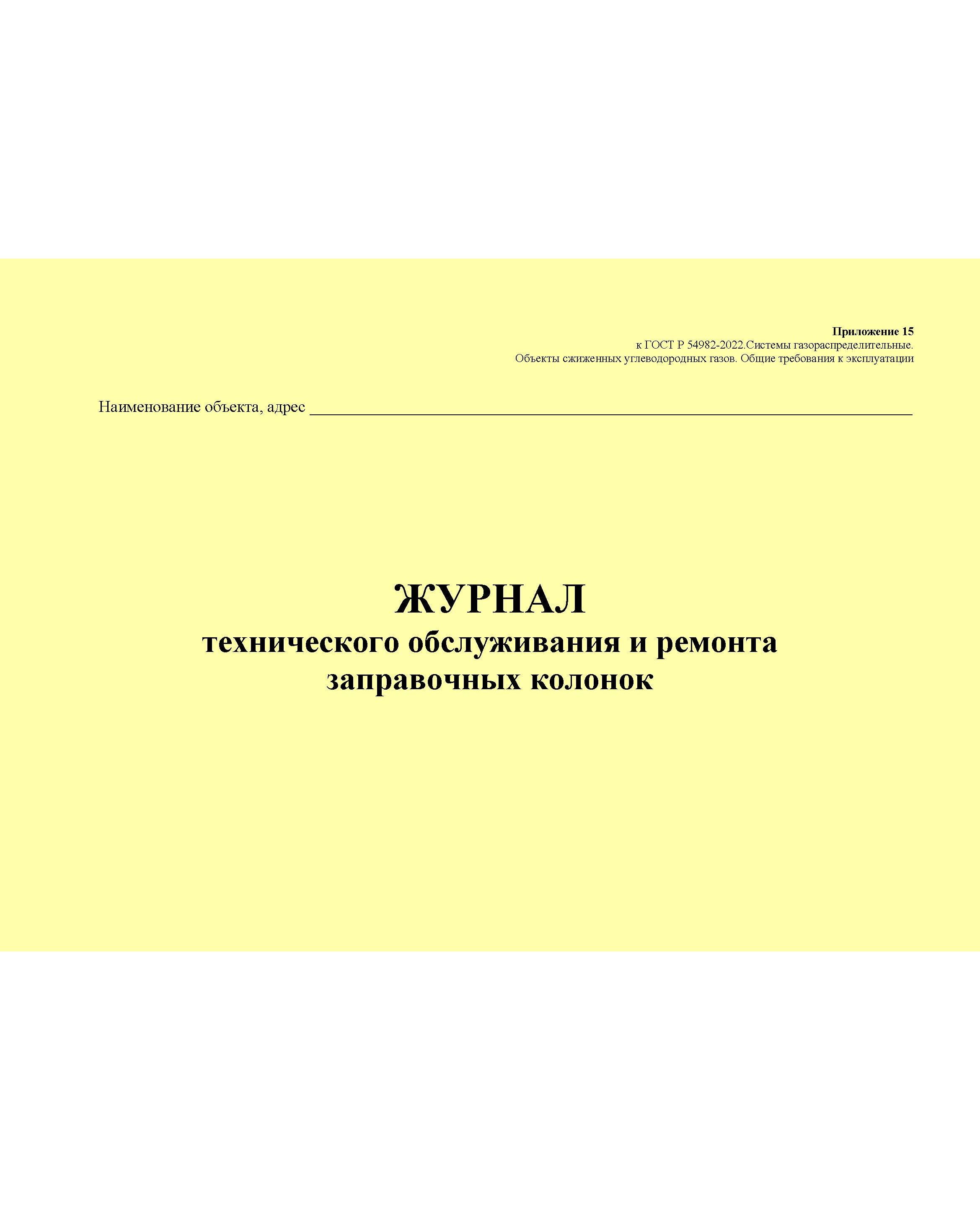 Главная/Журналы (Твердая, мягкая обложка, прошитые)/Объекты газораспределения/Журнал технического обслуживания и ремонта заправочных колонок. Приложение 15 к ГОСТ Р 54982-2022. Системы газораспределительные. Объекты сжиженных углеводородных газов. Общие требования к эксплуатации (альбомный, прошитый, 100 стр.)