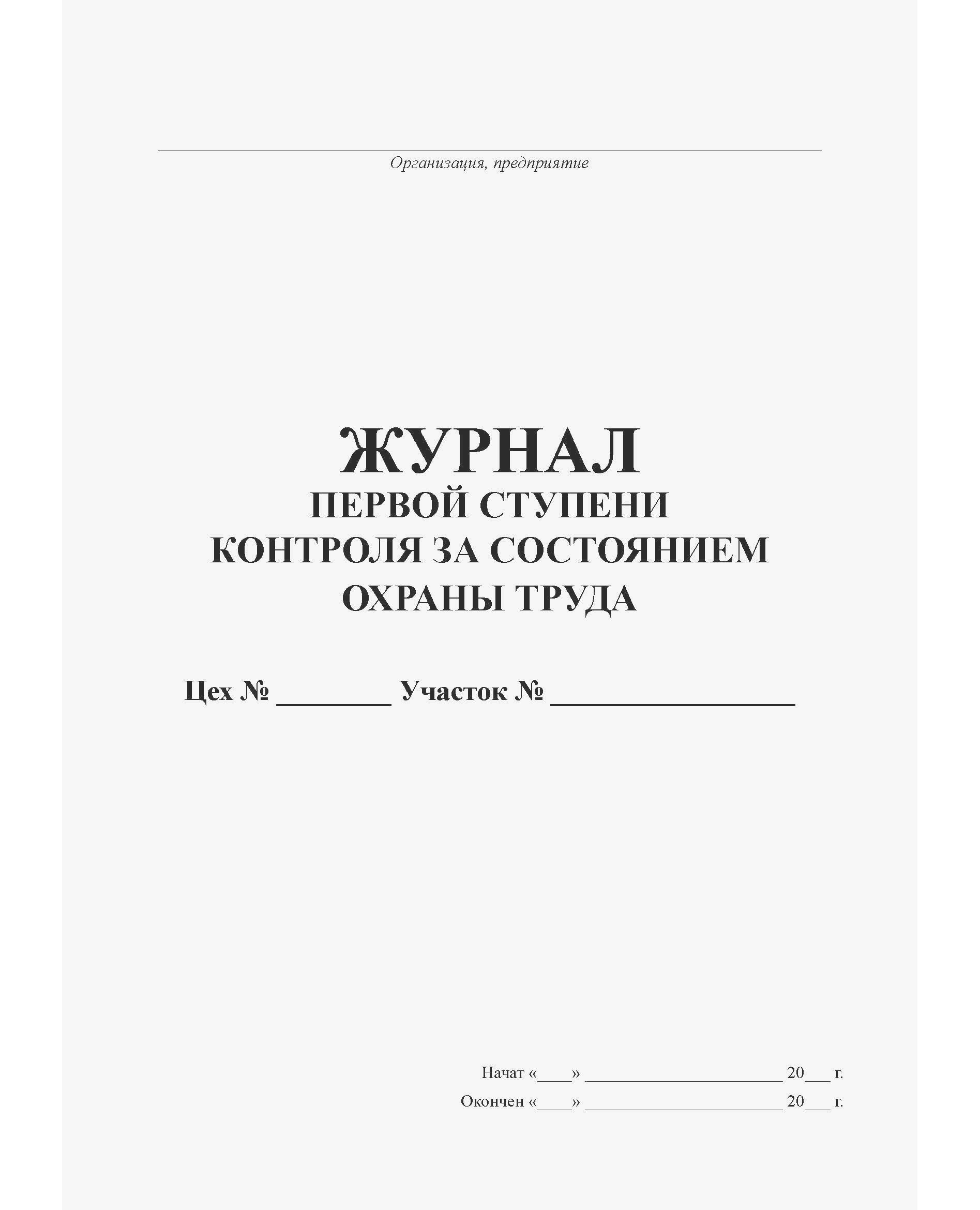 Журнал первой ступени контроля за состоянием охраны труда (прошитый, книжный, 100 страниц)
