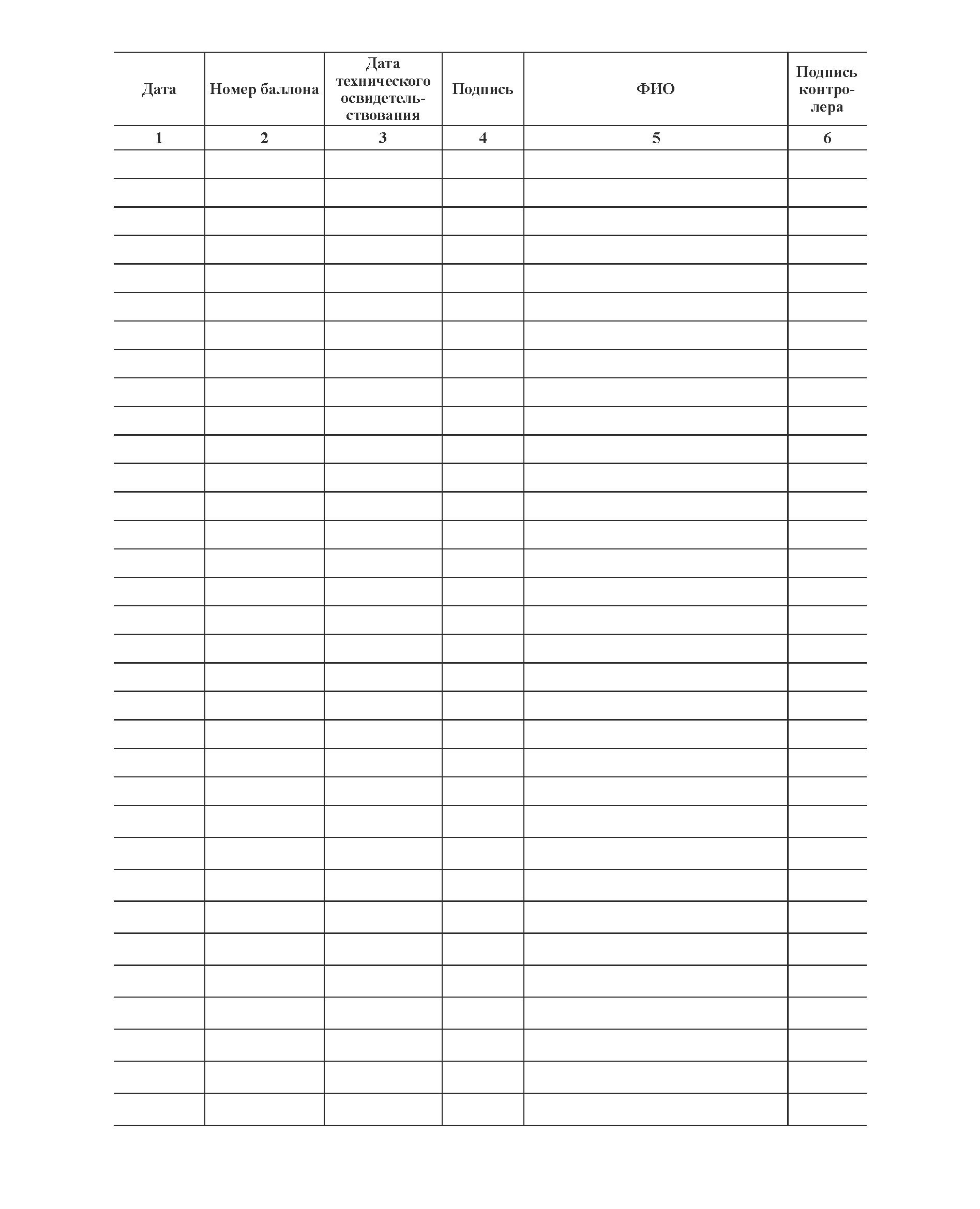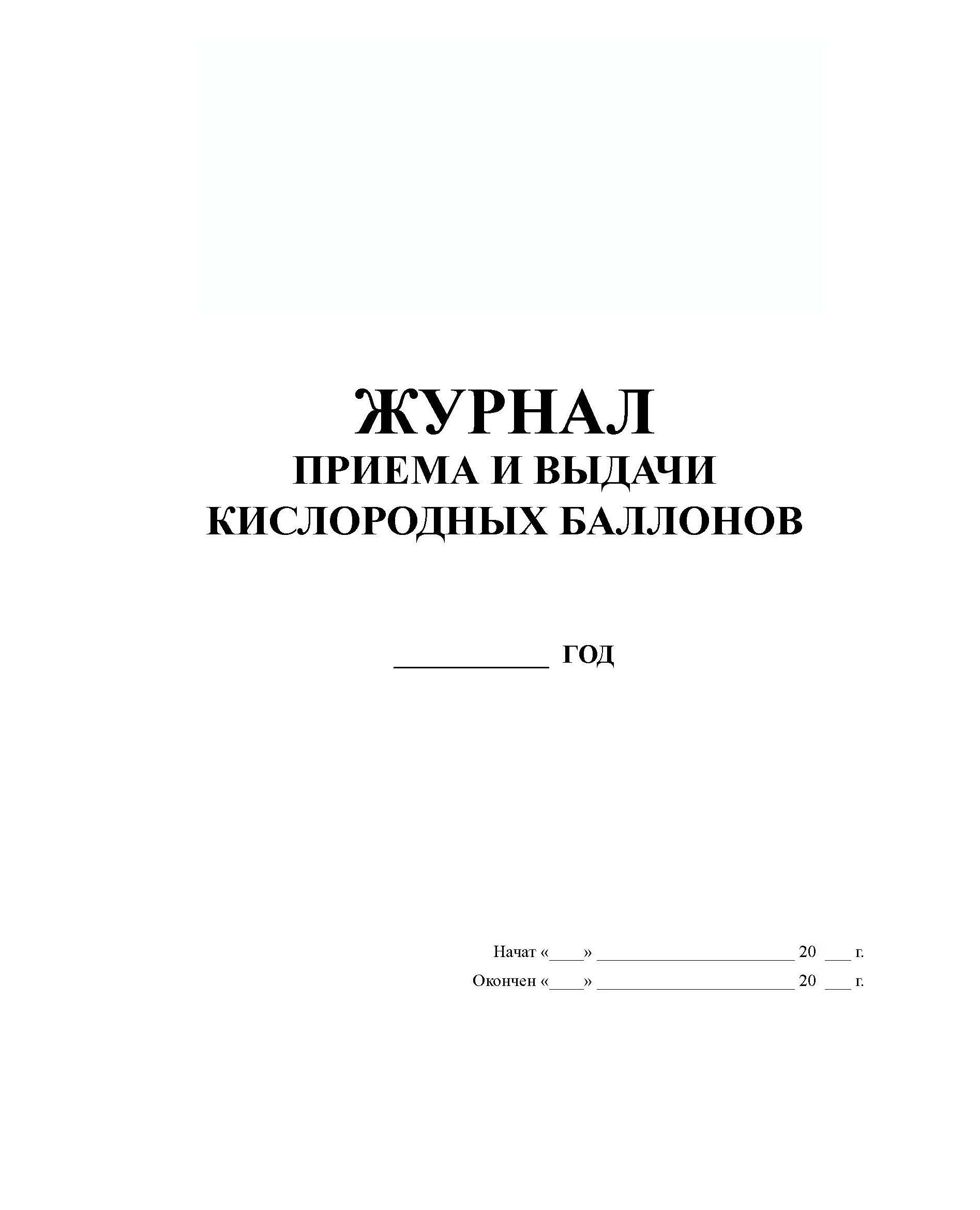 Журнал приема и выдачи кислородных баллонов (прошитый, 100 страниц)