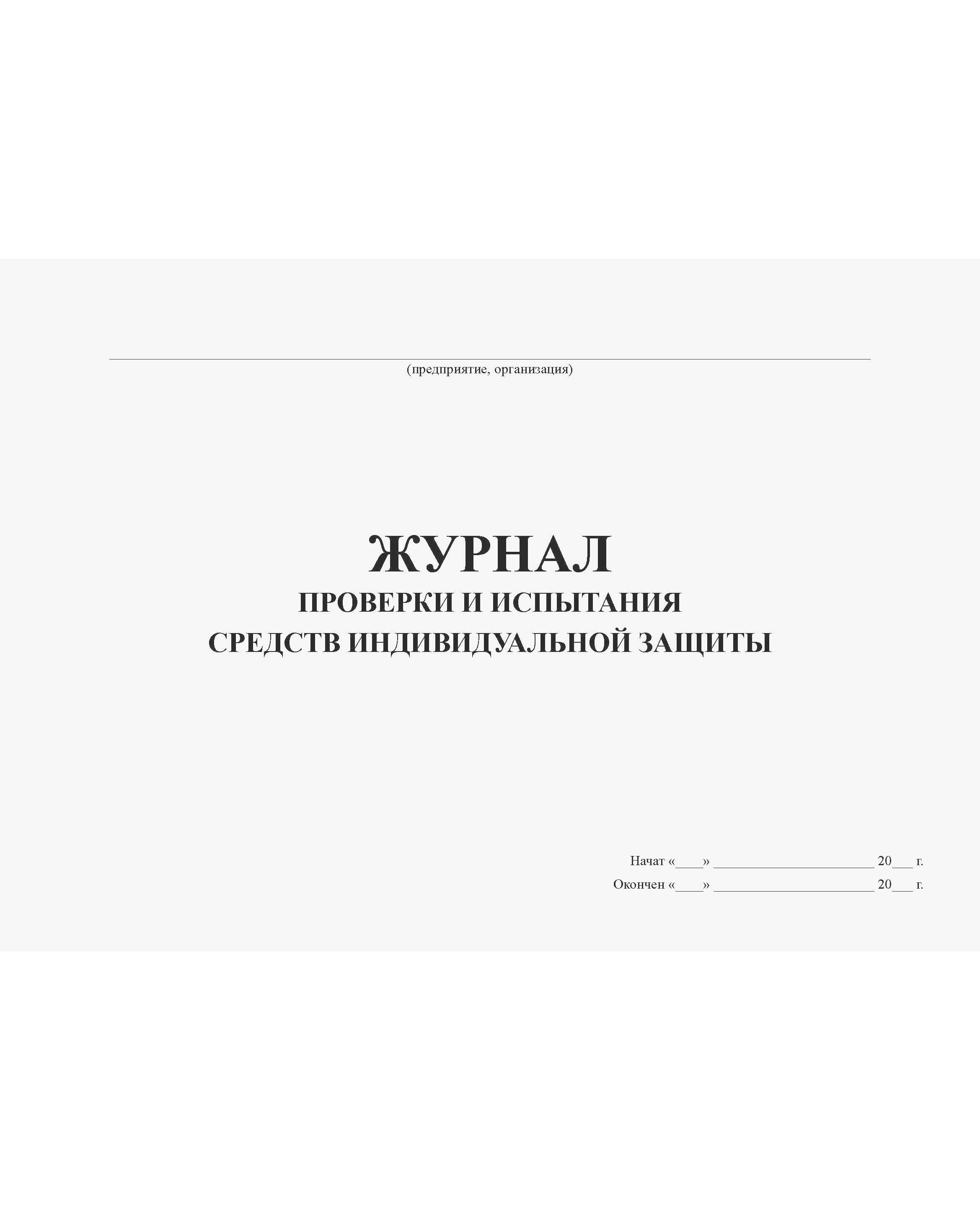 Журнал проверки и испытания средств индивидуальной защиты (прошитый, 100 страниц)