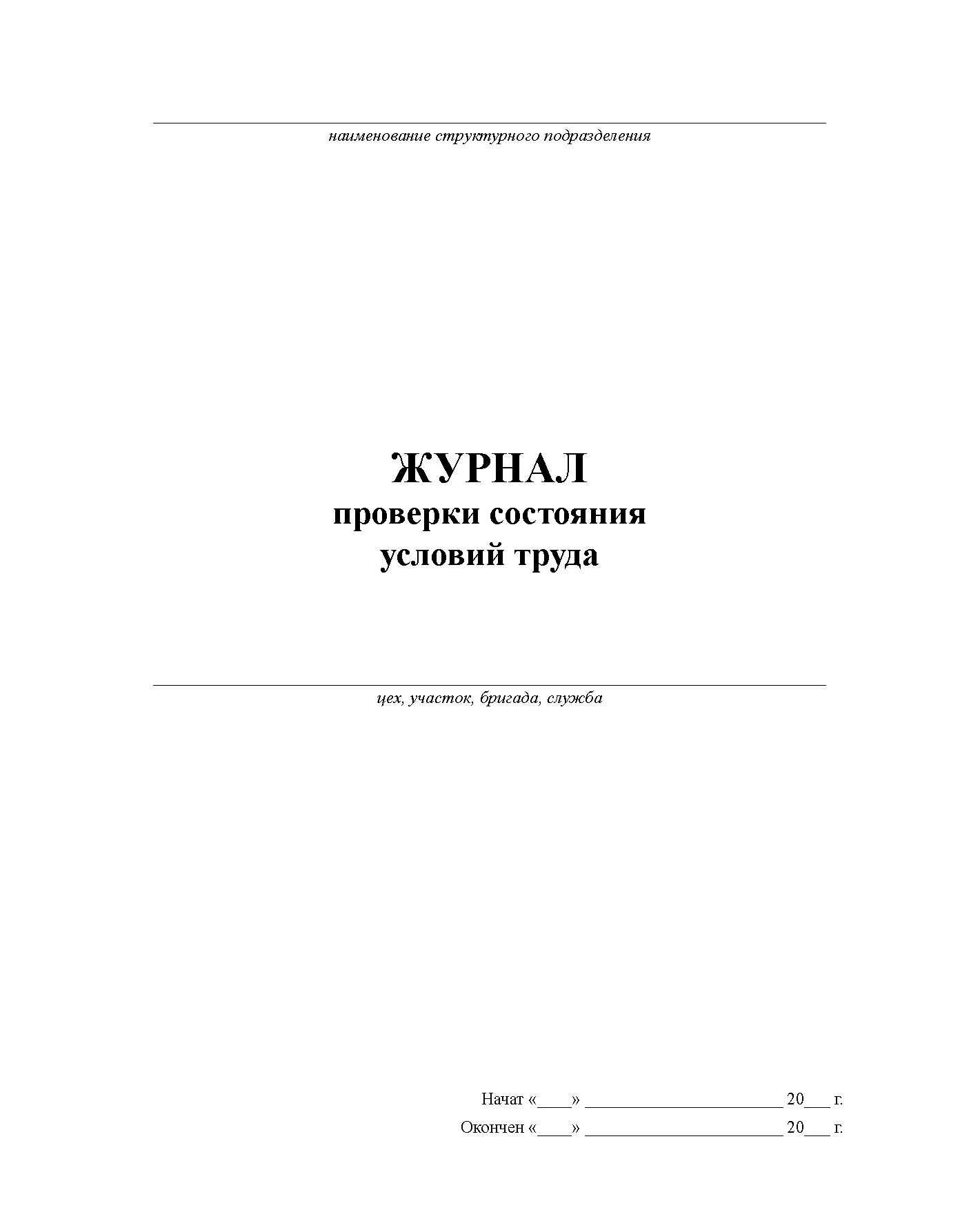 Журнал проверки состояния условий труда. (прошитый, 100 страниц)