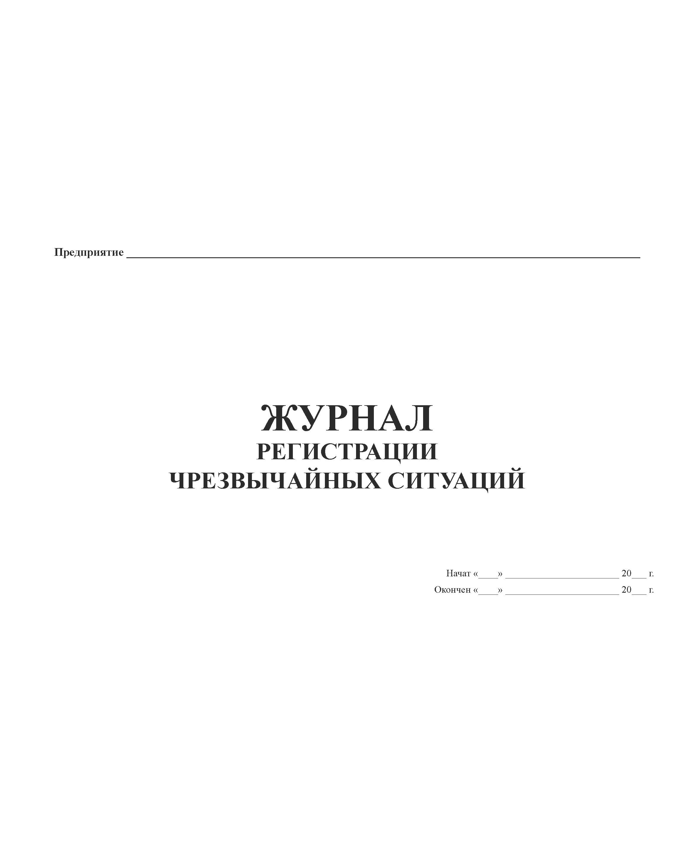Журнал регистрации чрезвычайных ситуаций (прошитый, 100 страниц)