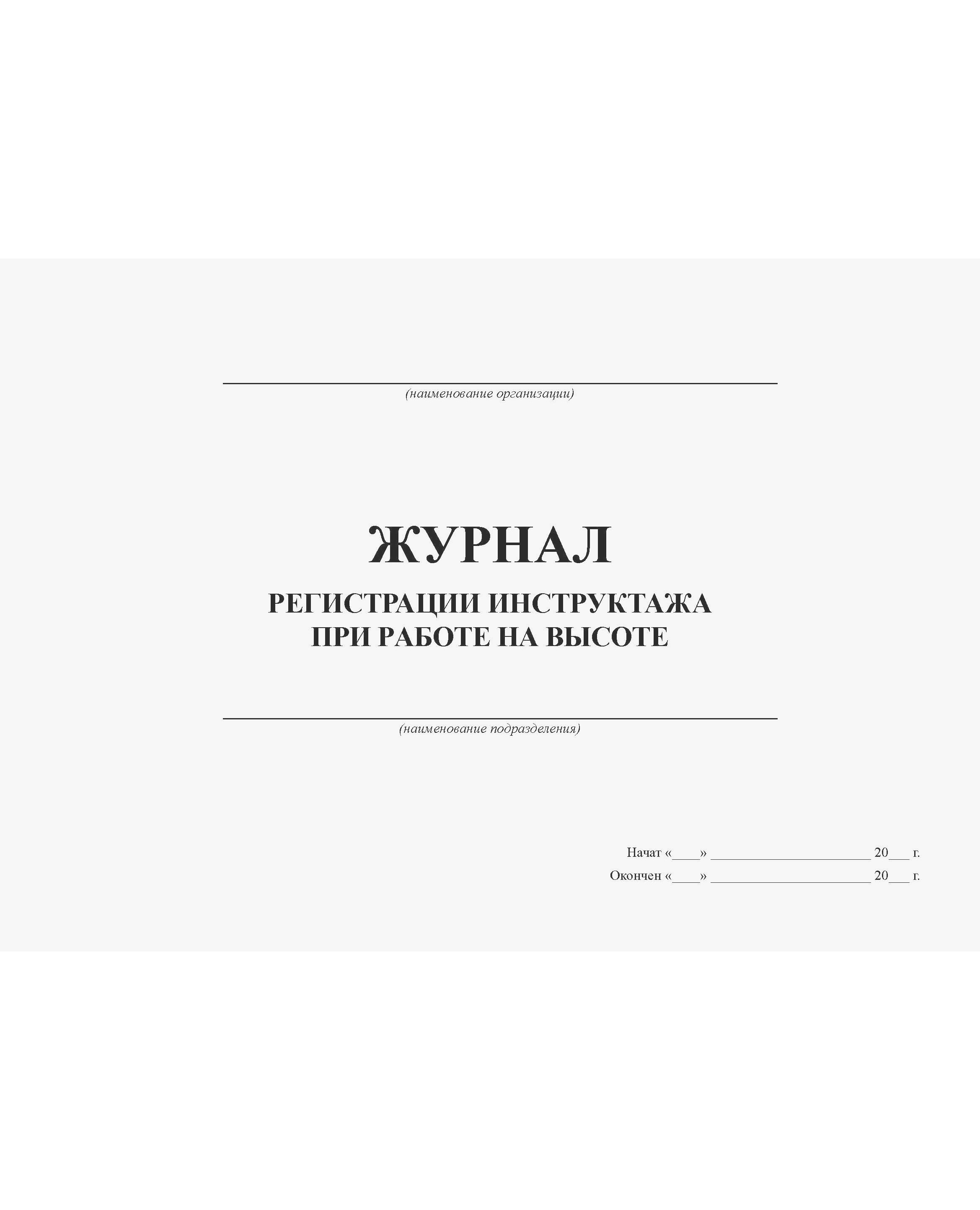 Журнал регистрации инструктажа при работе на высоте (прошитый, 100 страниц)