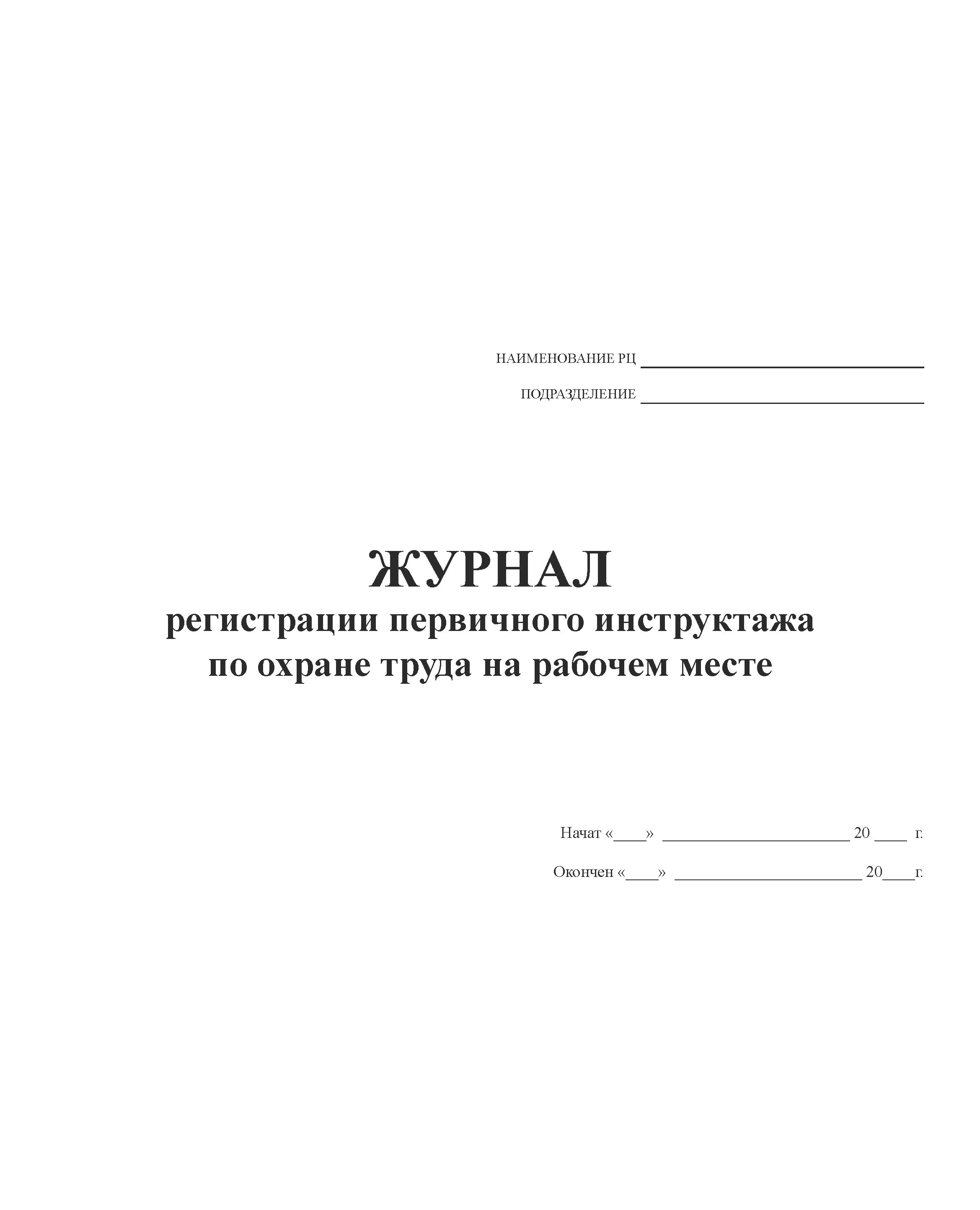 Журнал регистрации первичного инструктажа по охране труда на рабочем месте (прошитый, 100 страниц)
