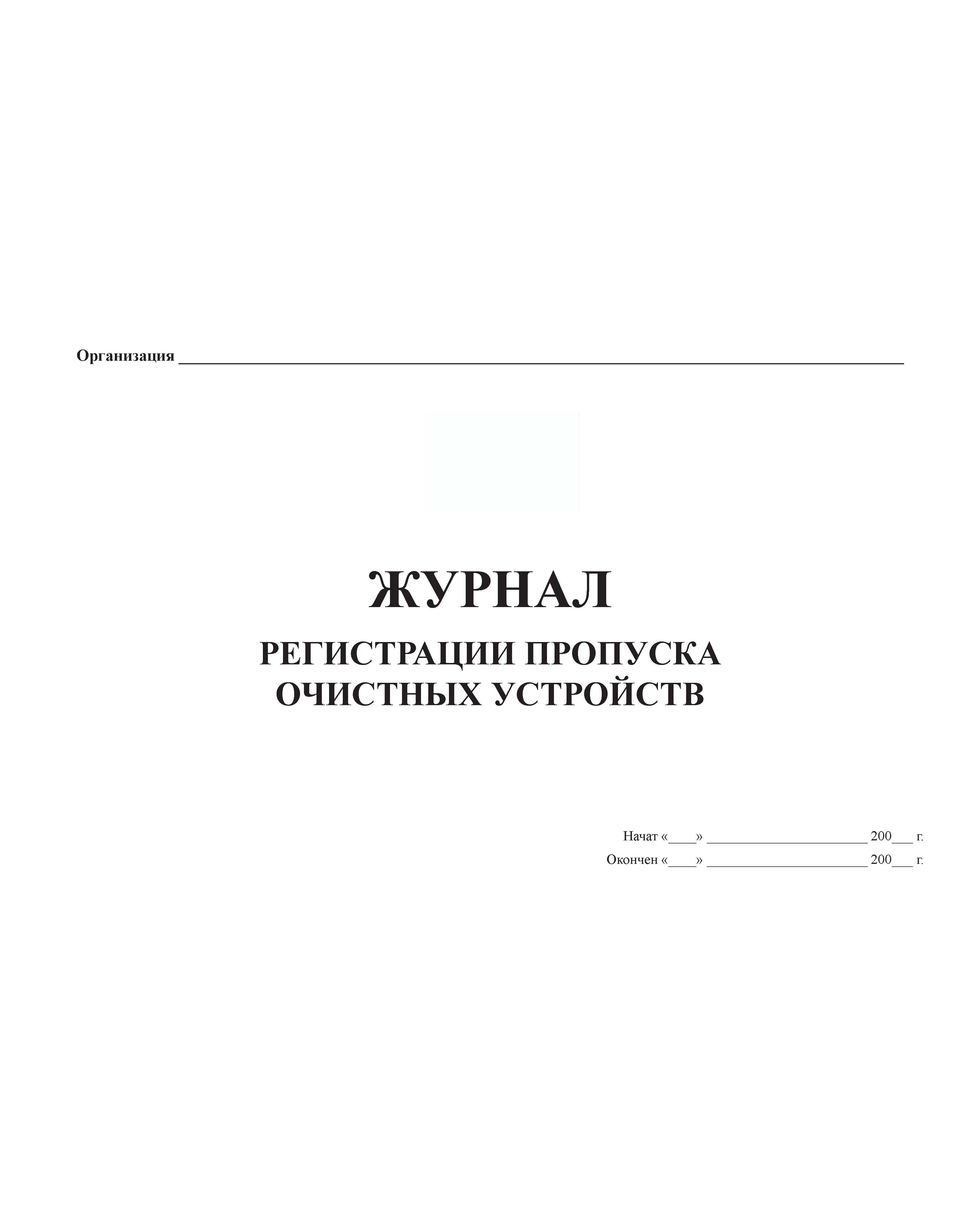 Журнал регистрации пропуска очистных устройств (прошитый, 100 страниц)