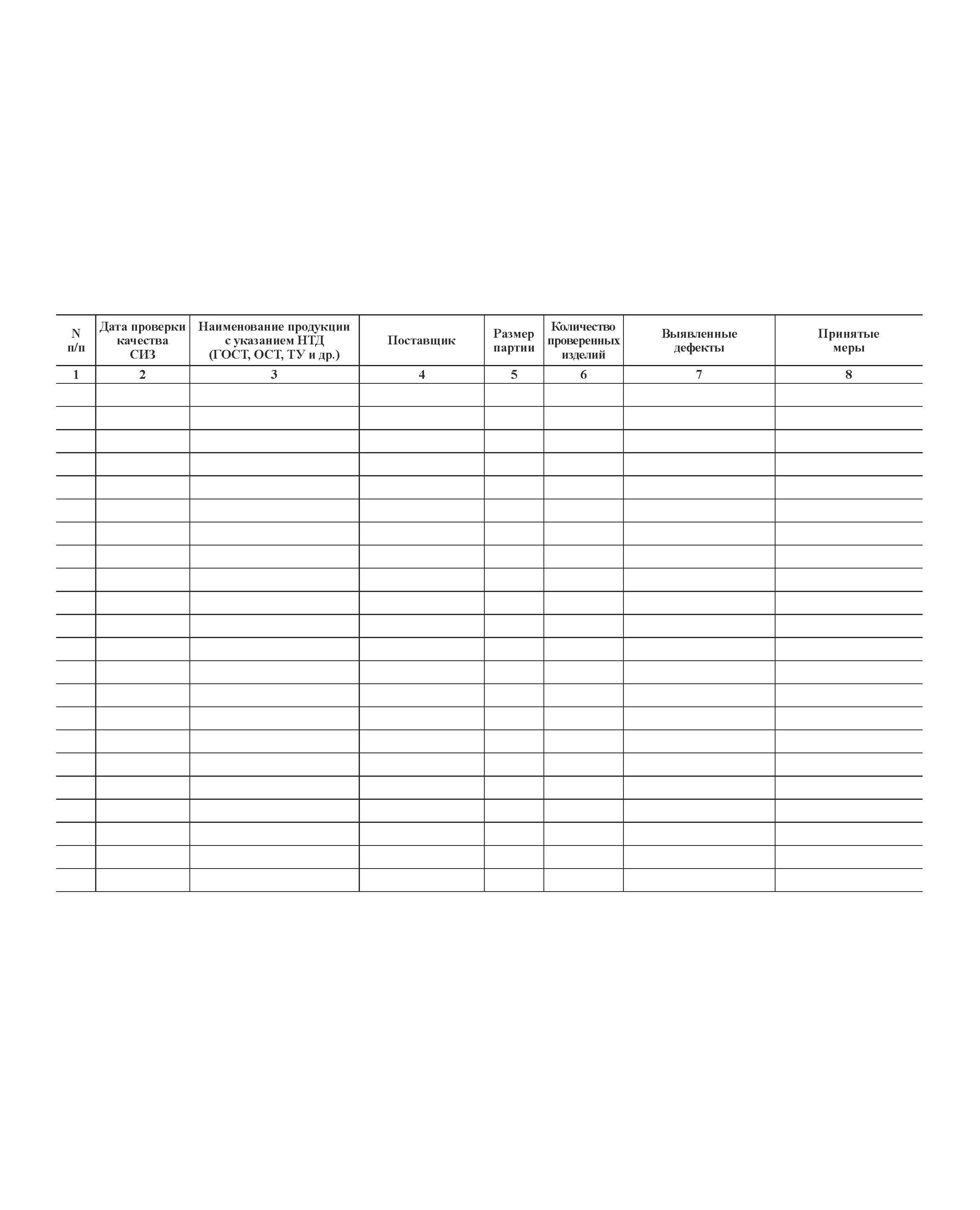 Журнал регистрации результатов проверки качества спецодежды, спецобуви и других средств индивидуальной защиты, формат А4 (форма № 4 нормативного документа ОСТ 35-20-87) (прошитый, 100 страниц)