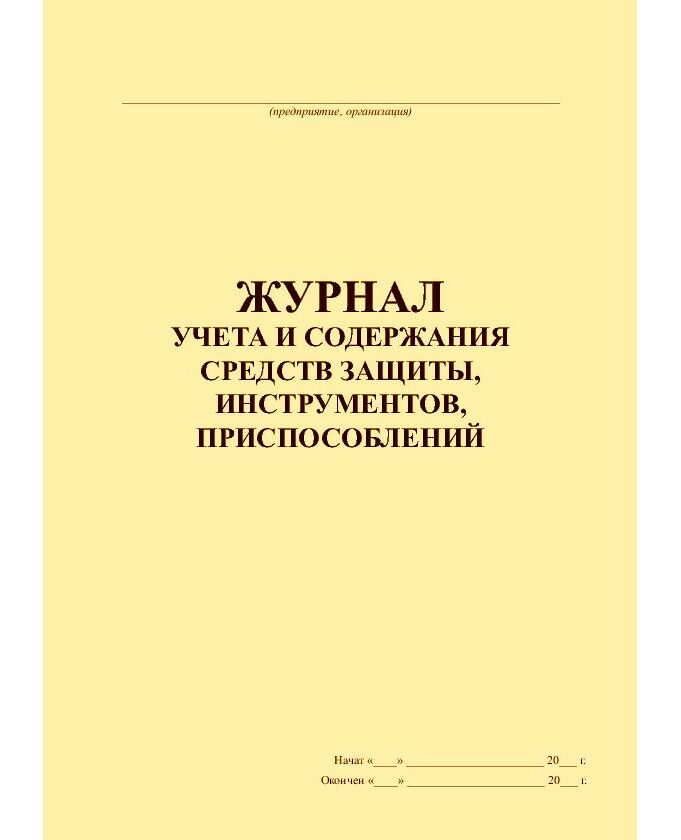 Журнал учета и содержания средств защиты, инструментов, приспособлений (прошитый, 100 страниц, книжный)