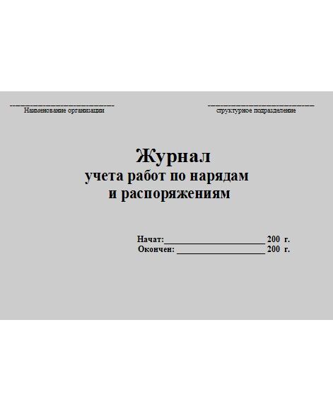 Журнал учета работ по нарядам и распоряжениям. Приложение № 7 к ПОТ Р О-45-009-2003 (прошитый, 100 страниц)