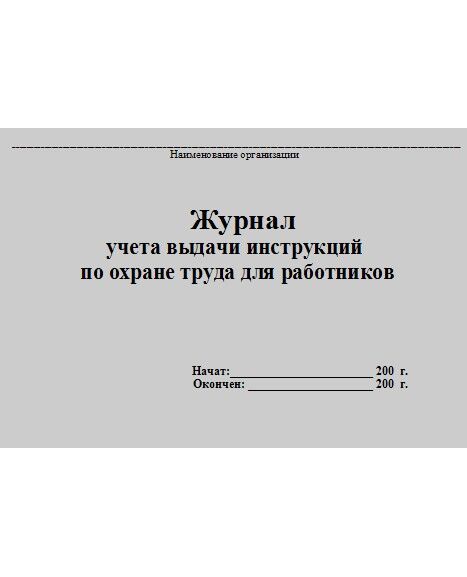 Журнал учета выдачи инструкций по охране труда для работников. (Приложение № 3 к Методическим рекомендациям по разработке инструкций по охране труда, утвержденным постановлением Минтруда России 13.05.2004) (альбомный, прошитый, 100 страниц).