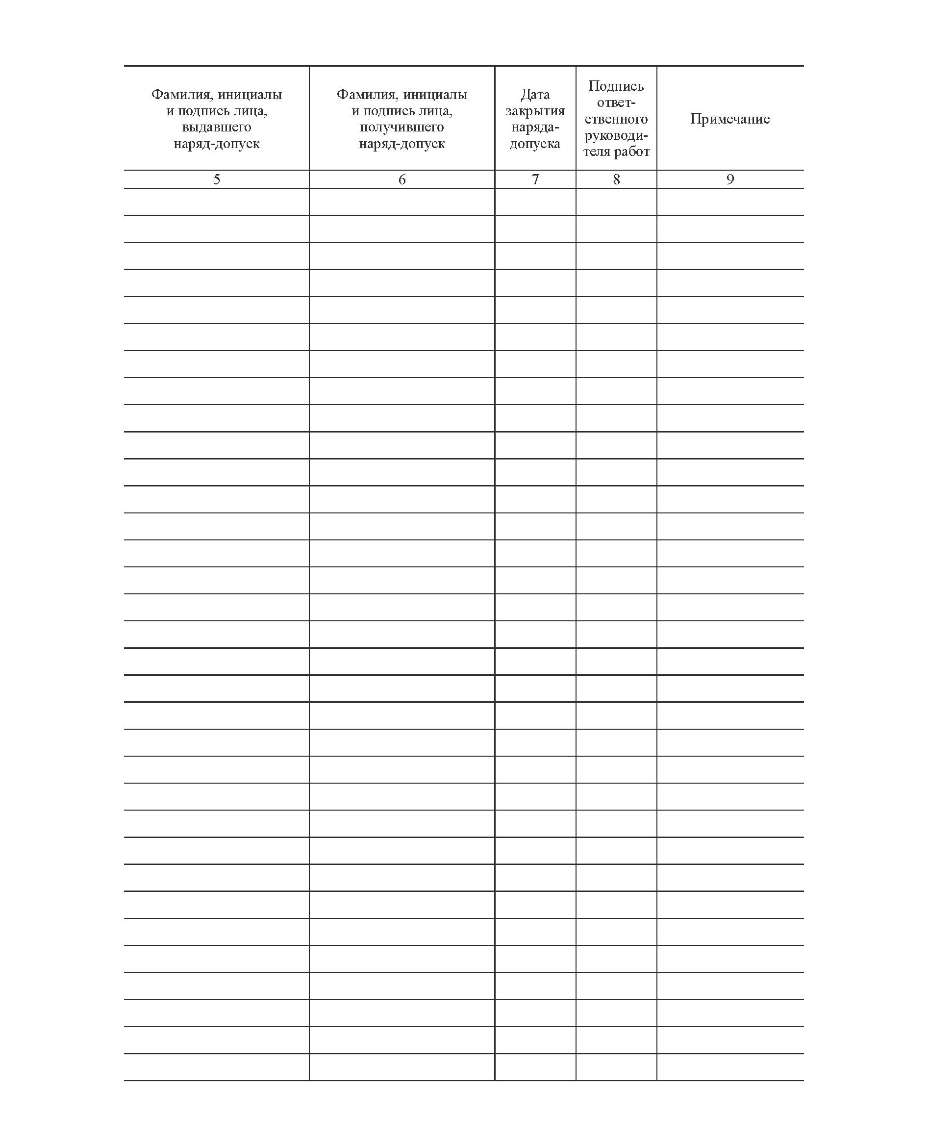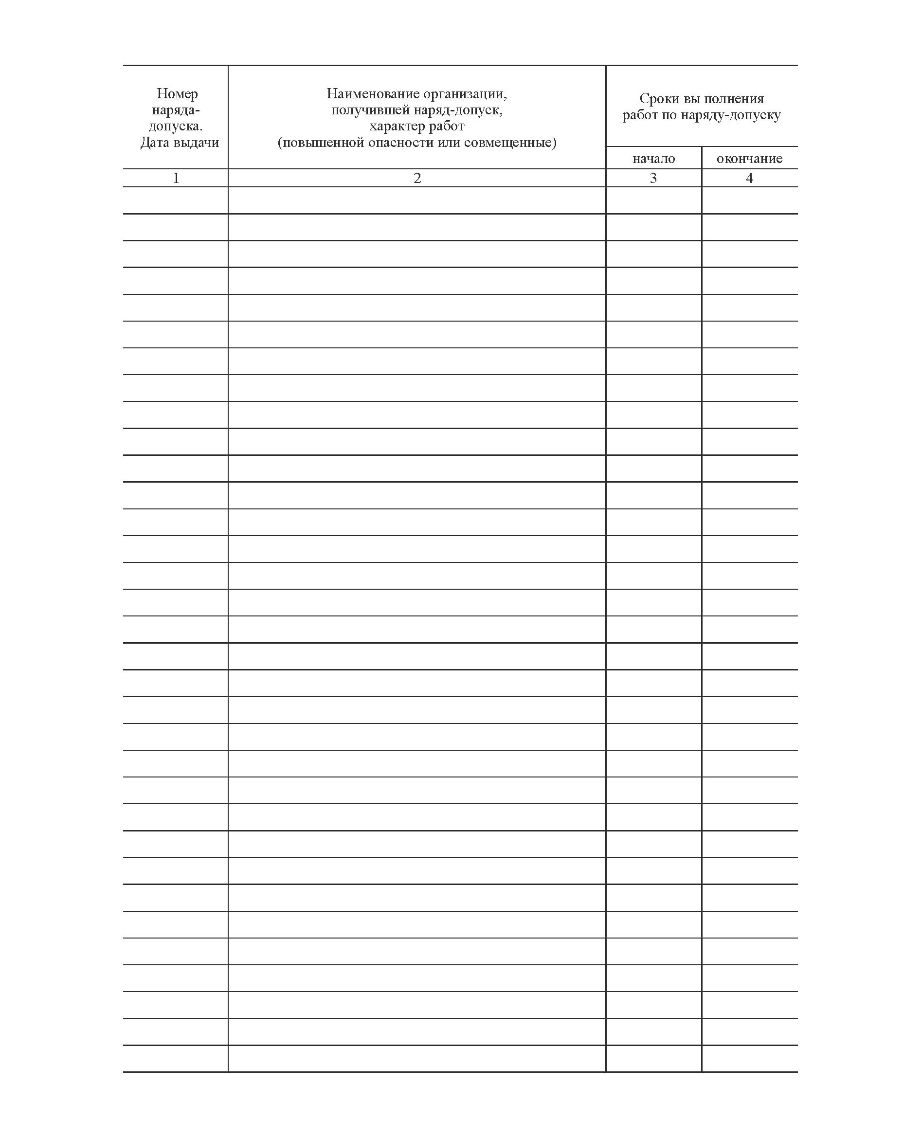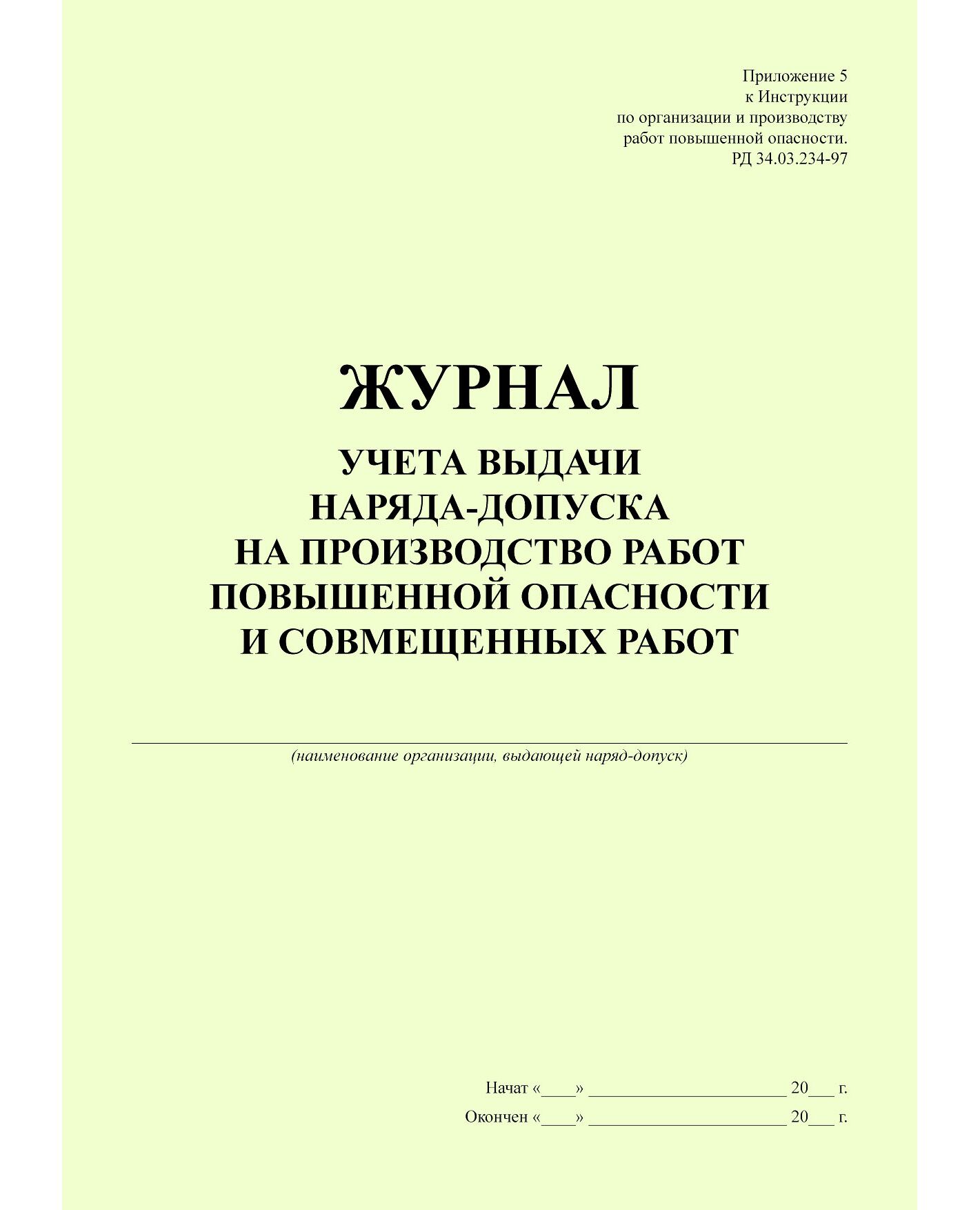Журнал учета выдачи наряда-допуска на производство работ повышенной опасности и совмещенных работ (Приложение 5 к Инструкции по организации и производству работ повышенной опасности. РД 34.03.234-97) (прошитый, 100 страниц)