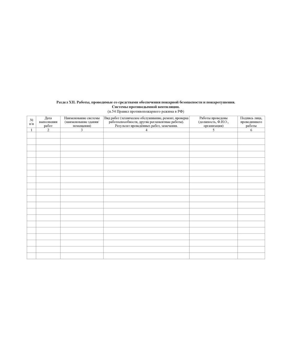 Полная форма журнала соответствует Правилам противопожарного режима в Российской Федерации.