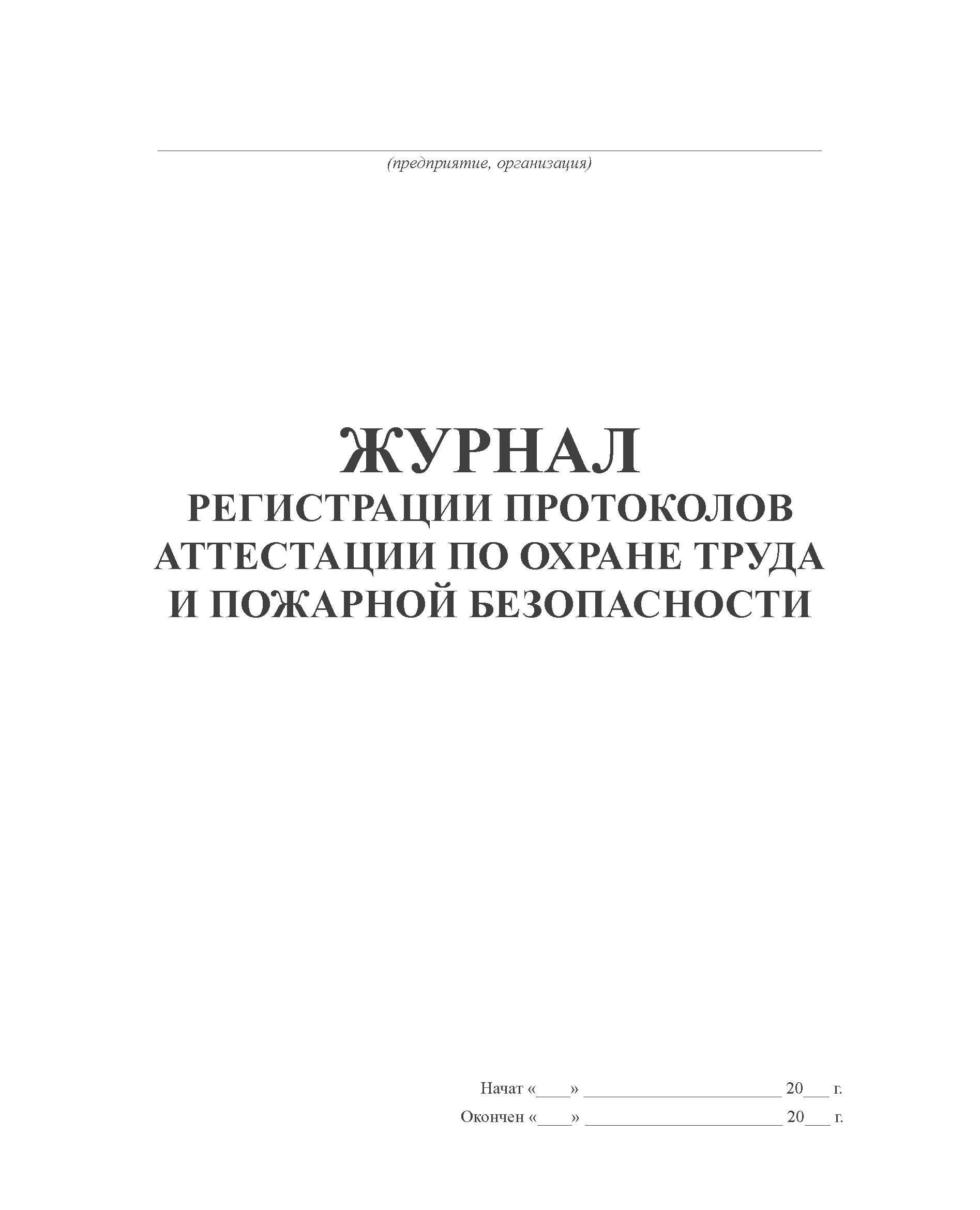 Журнал регистрации протоколов аттестации по охране труда и пожарной безопасности (100 стр., прошит)