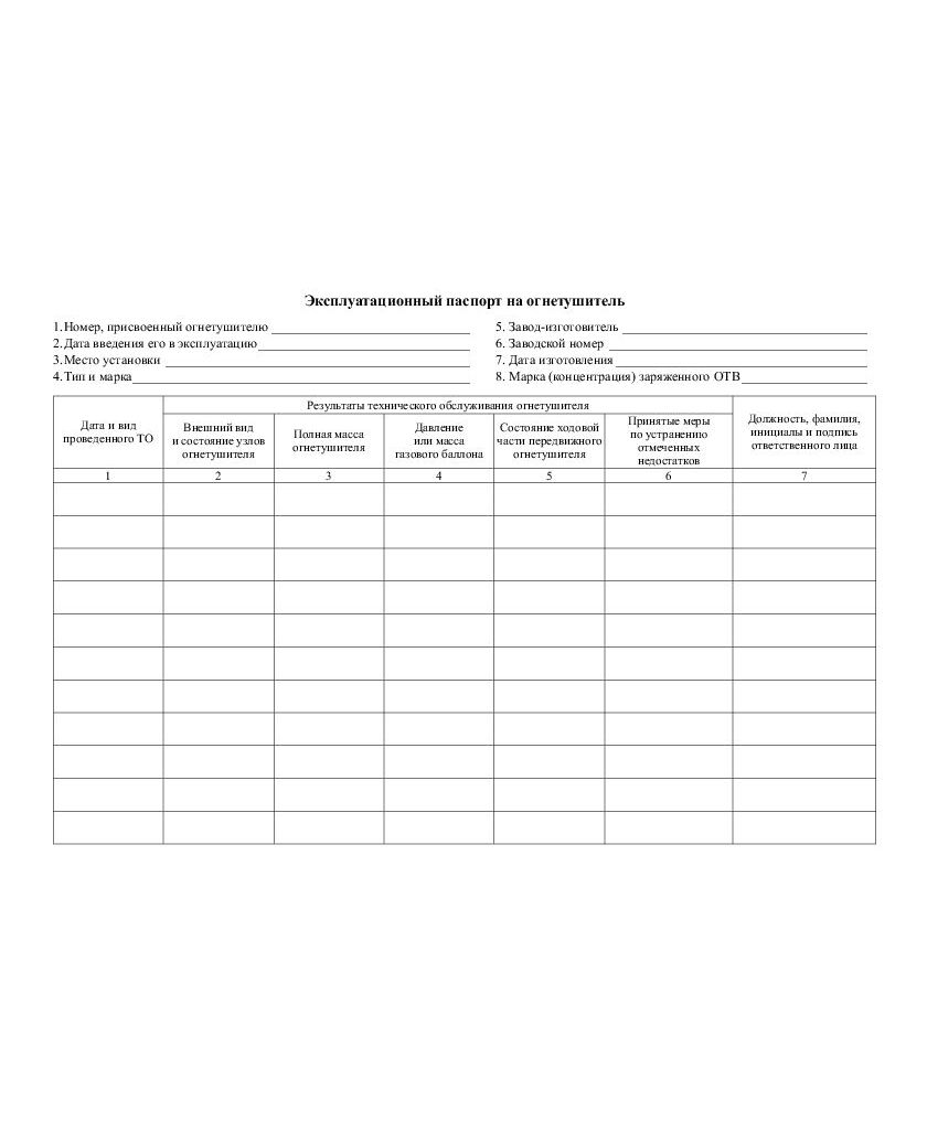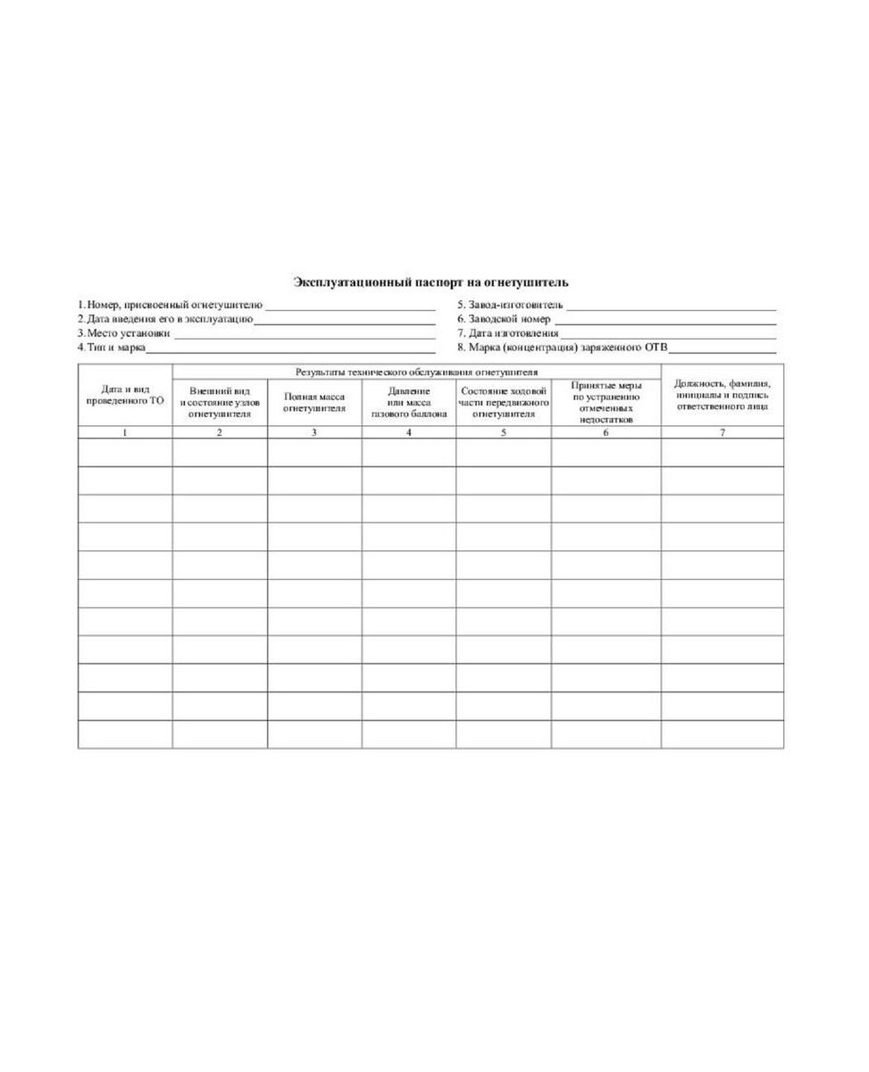 В Приложении Г к СП 9.13130.2009 приведены рекомендуемые формы (Эксплуатационный паспорт на огнетушитель, Результаты технического обслуживания огнетушителя), на основании которых был разработан этот журнал.