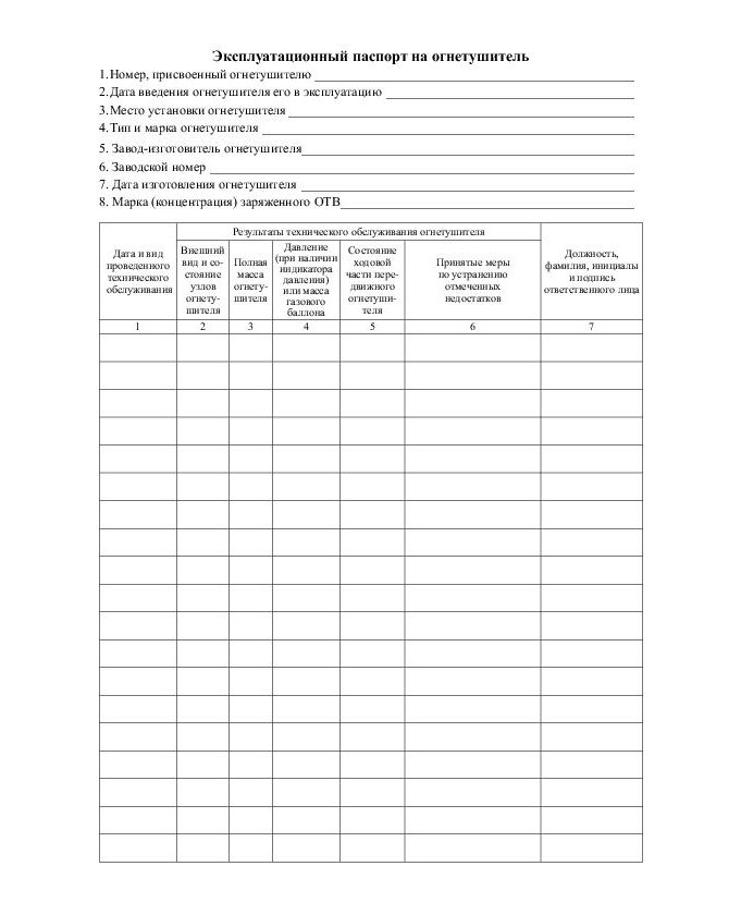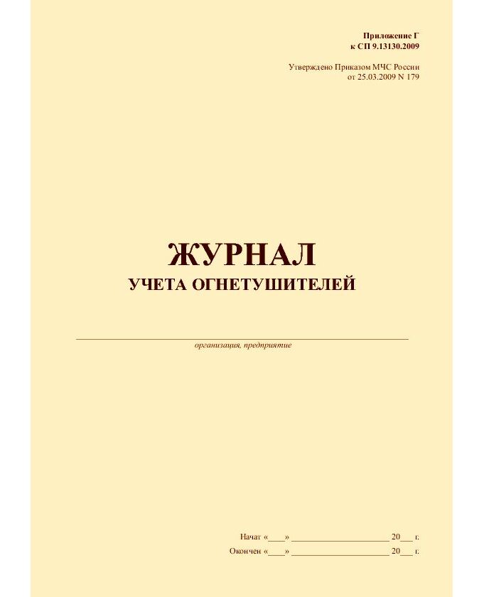 В Приложении Г к СП 9.13130.2009 приведены рекомендуемые формы (Эксплуатационный паспорт на огнетушитель, Результаты технического обслуживания огнетушителя), на основании которых был разработан этот журнал.