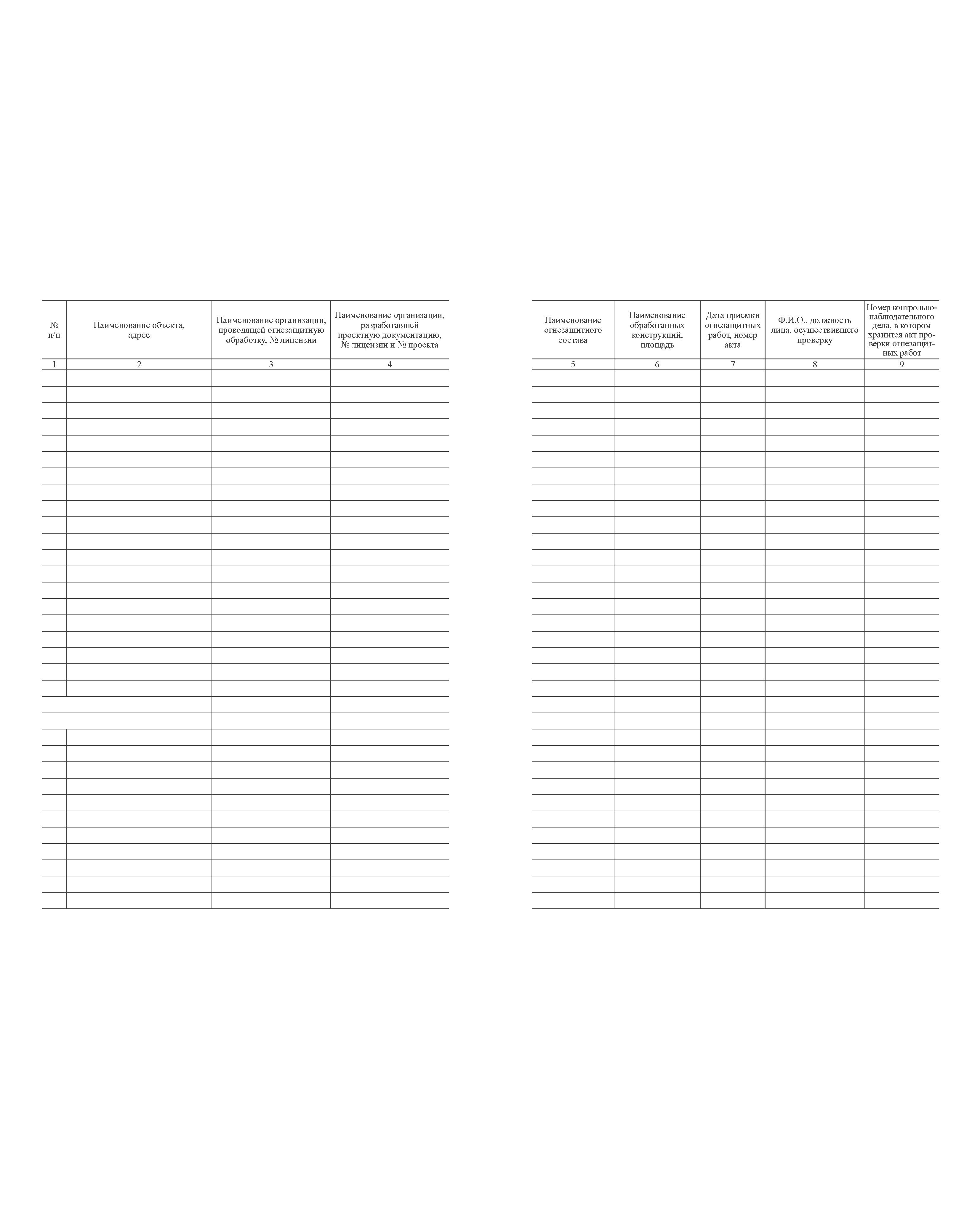 Журнал учета огнезащитных работ (100 страниц, прошитый)