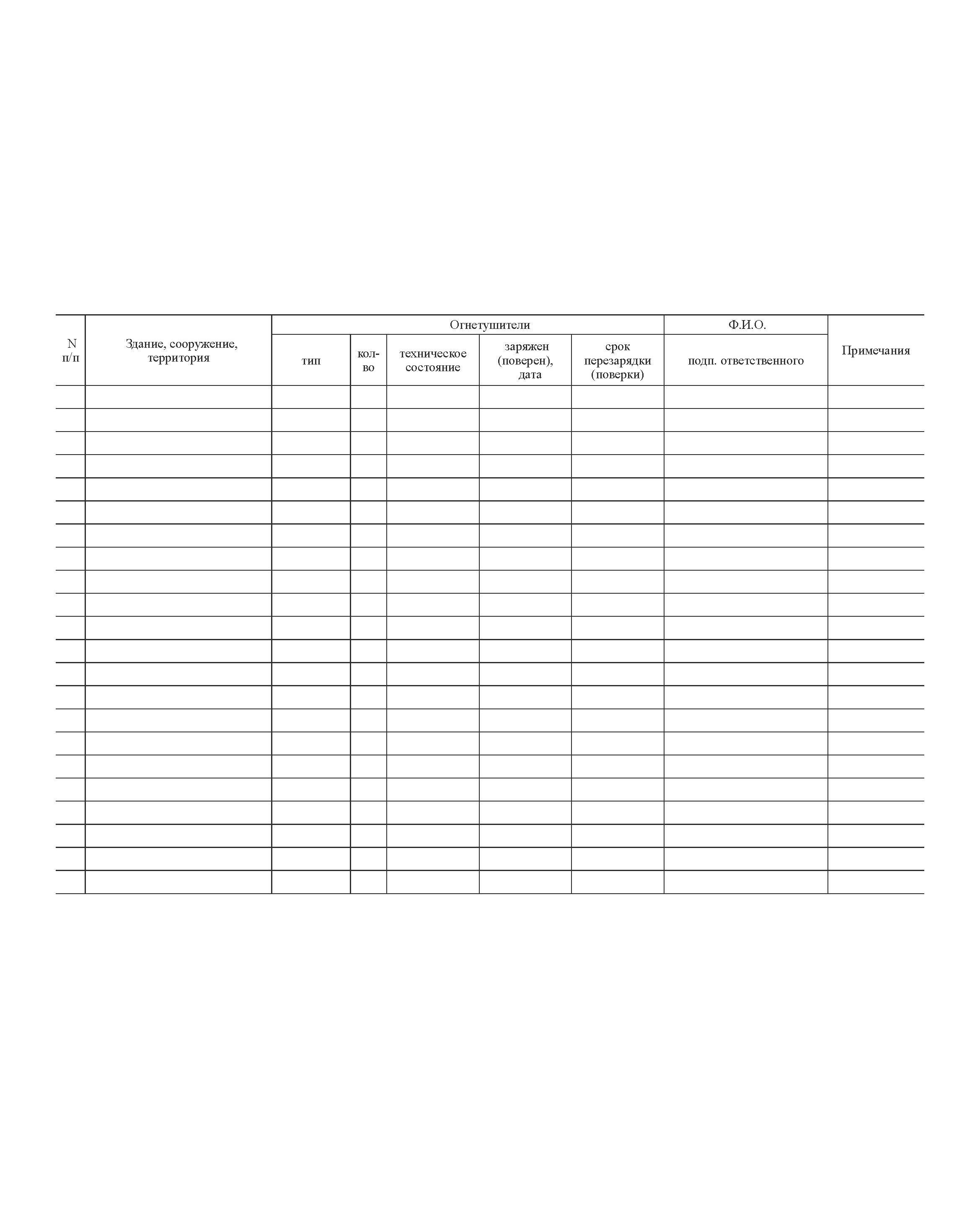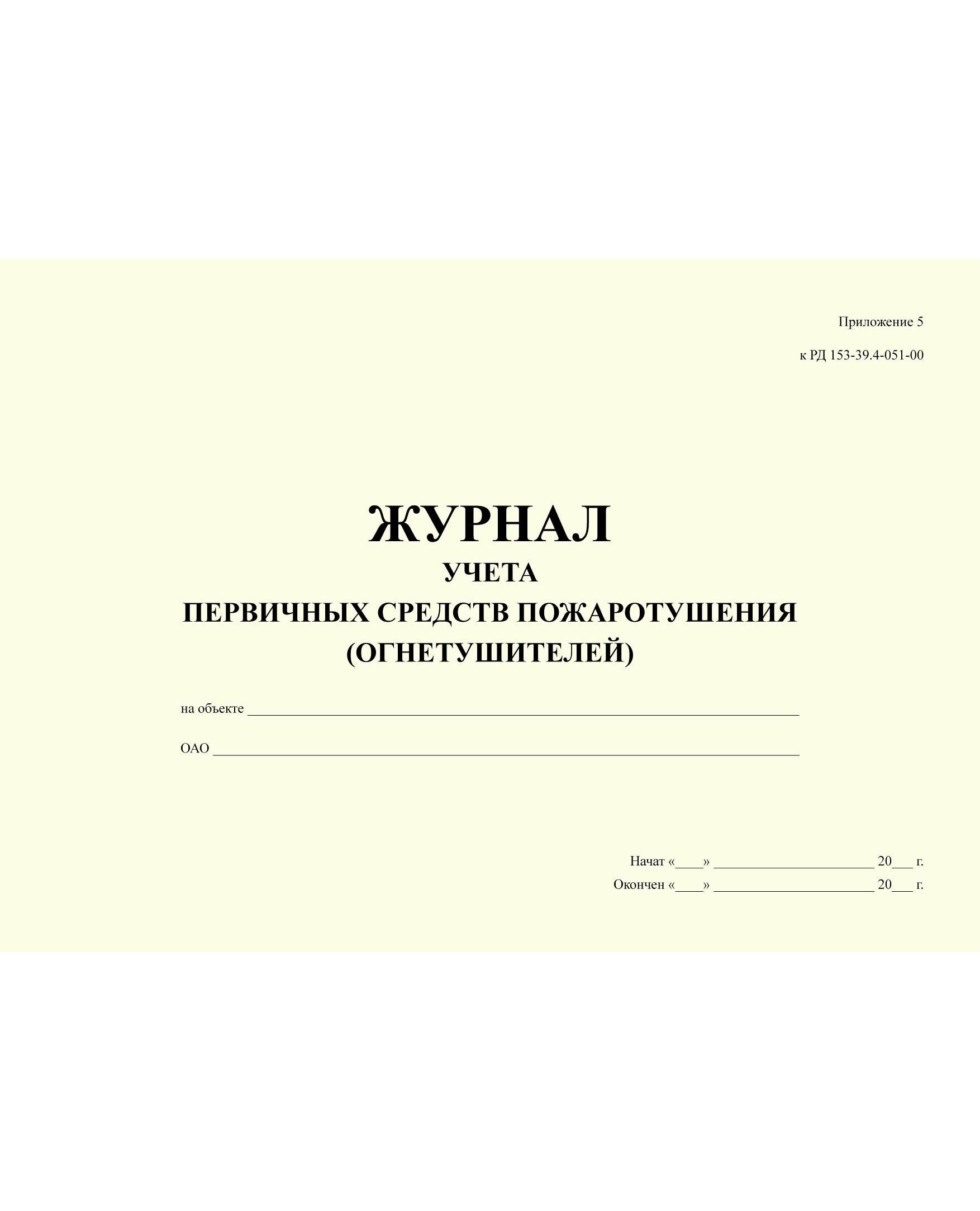 Журнал учета первичных средств пожаротушения (огнетушителей). Приложение 5 к РД 153-39.4-051-00