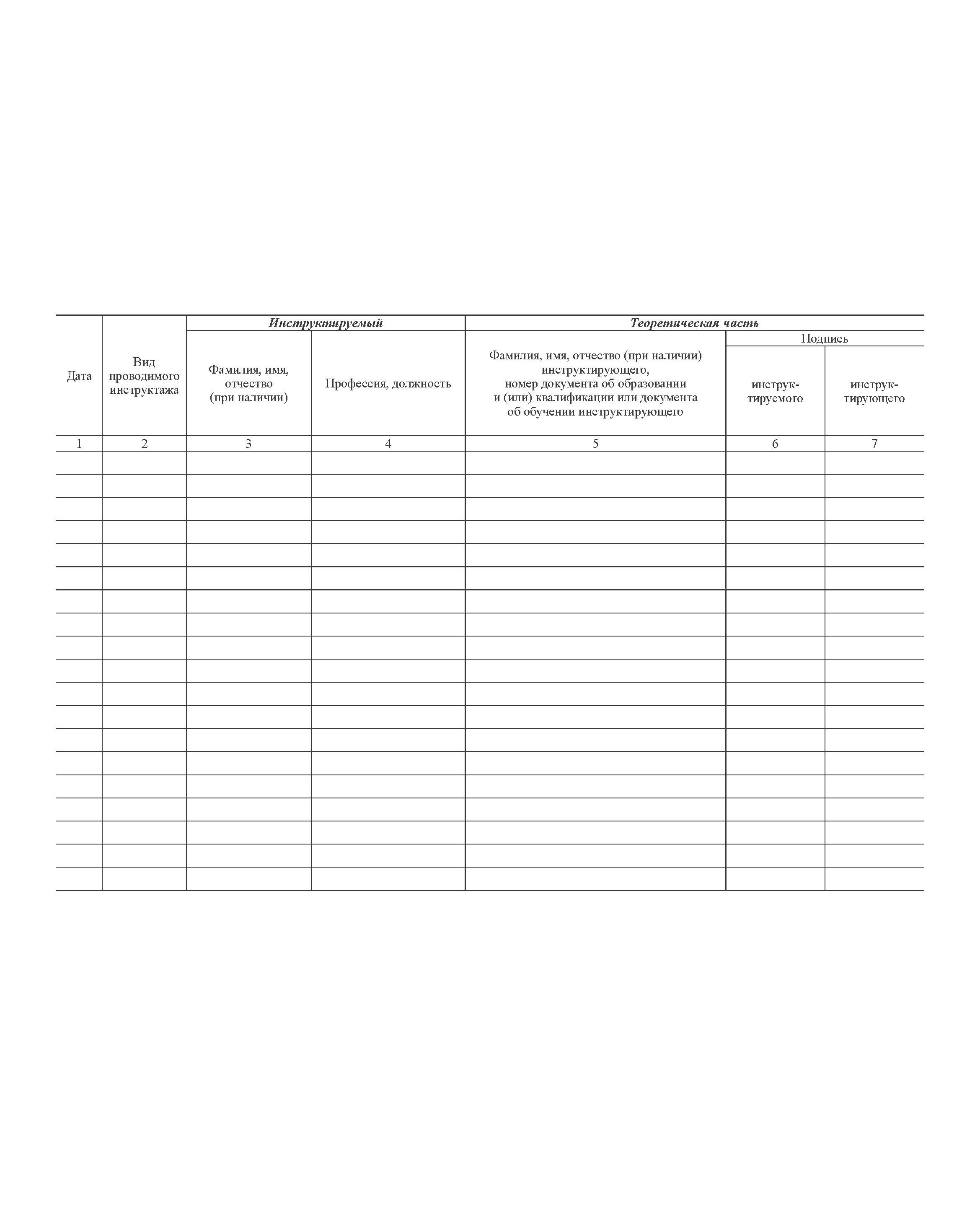 Журнал учета противопожарных инструктажей. Приложение к порядку, видам, срокам обучения лиц, осуществляющих трудовую или служебную деятельность, по программам противопожарного инструктажа, утв. Приказом МЧС России от 16.12.2024 № 1120 (100 стр., прошитый, альбомный разворот)
