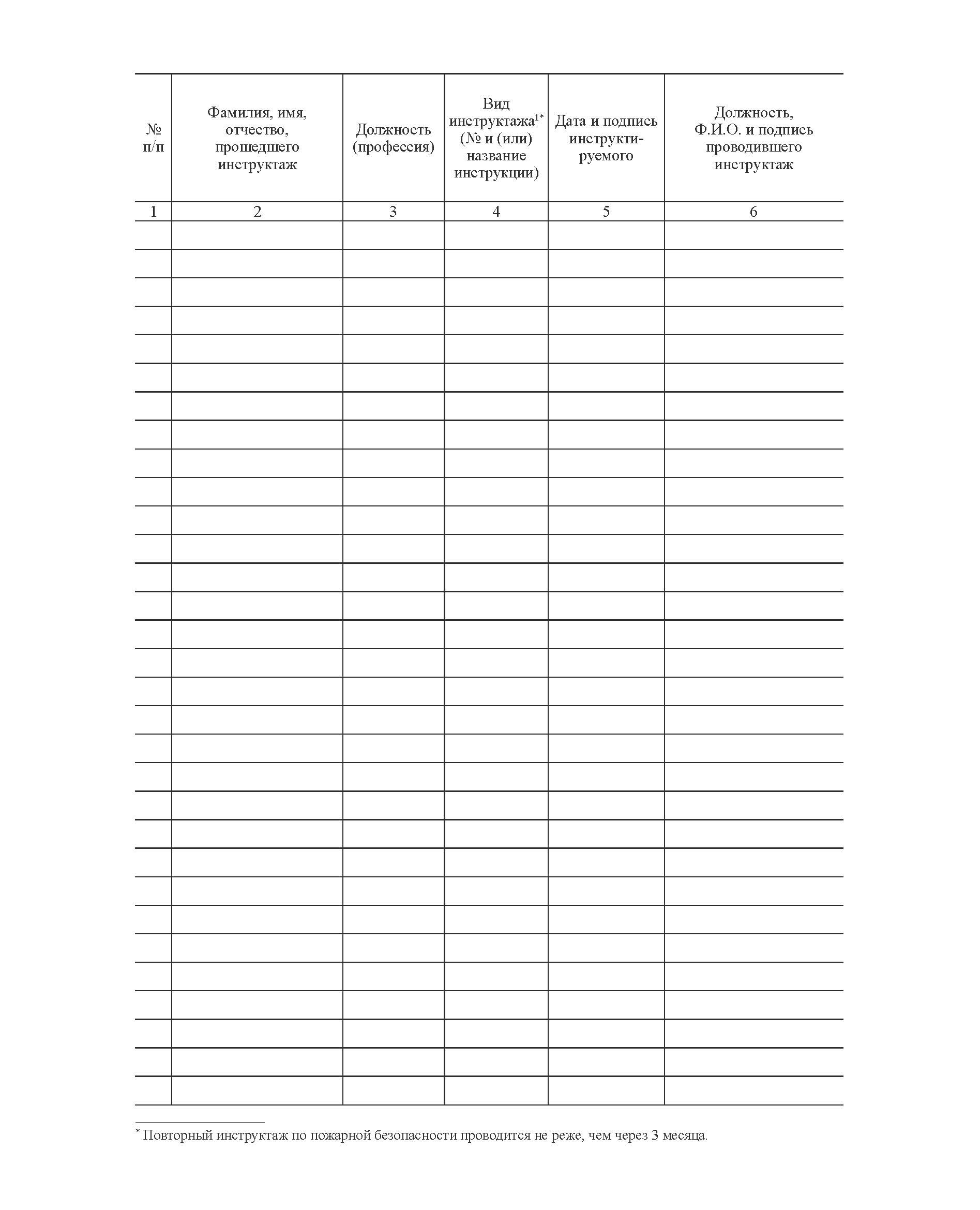 Журнал учета проведения повторного, внепланового, целевого инструктажей по пожарной безопасности (прошитый, 100 страниц)