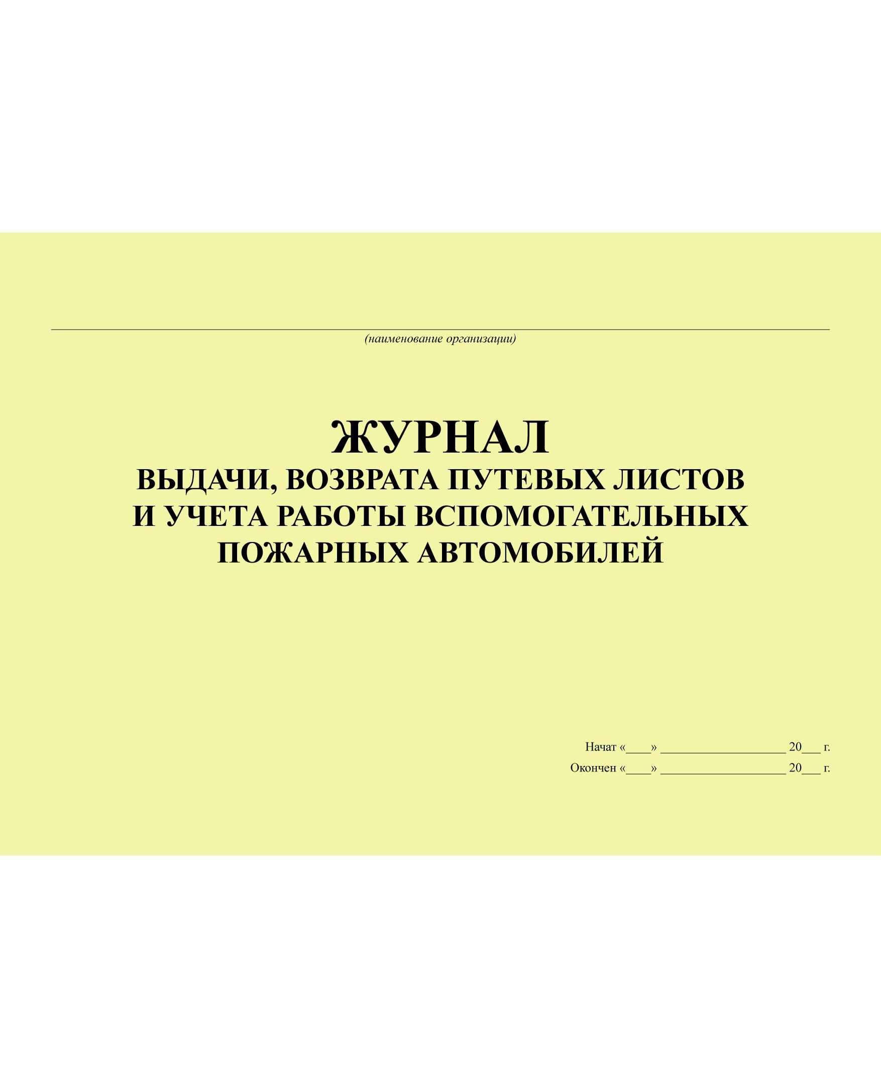 Журнал выдачи, возврата путевых листов и учета работы вспомогательных пожарных автомобилей (Приложение №9 к Приказу МВД России от 24.01.1996 № 34) (прошитый, 100 страниц)