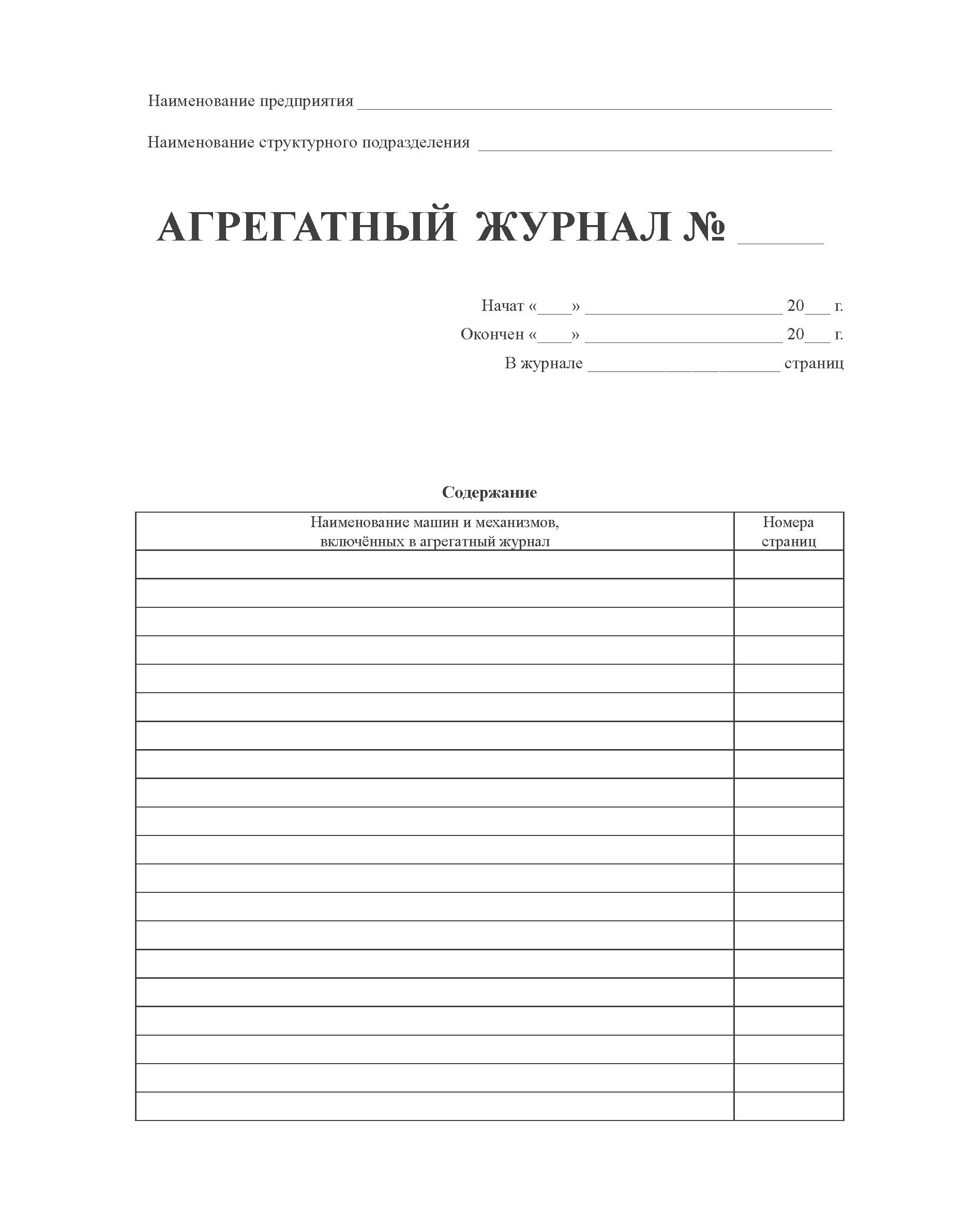 При включении в журнал нескольких машин или механизмов для каждого из них отводится соответствующее число страниц, которые указываются в оглавлении агрегатного журнала.