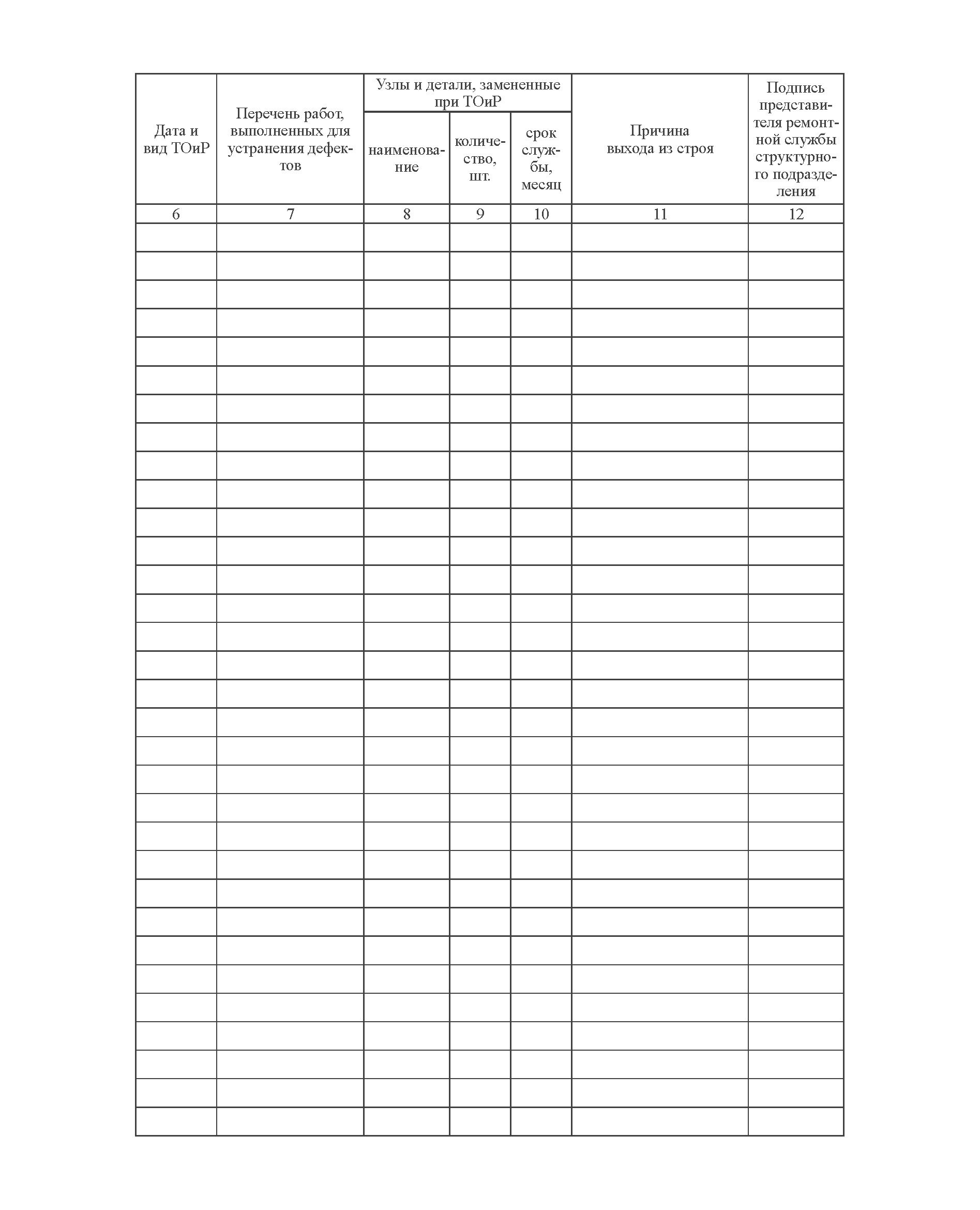Записи об износе и обнаруженных дефектах, а также результаты осмотров (в том числе осмотров по графику) должны заноситься в агрегатный журнал в день осмотра или ревизии оборудования, а записи о выполненных ремонтных работах – не позднее чем в двухдневный срок после окончания ремонта.