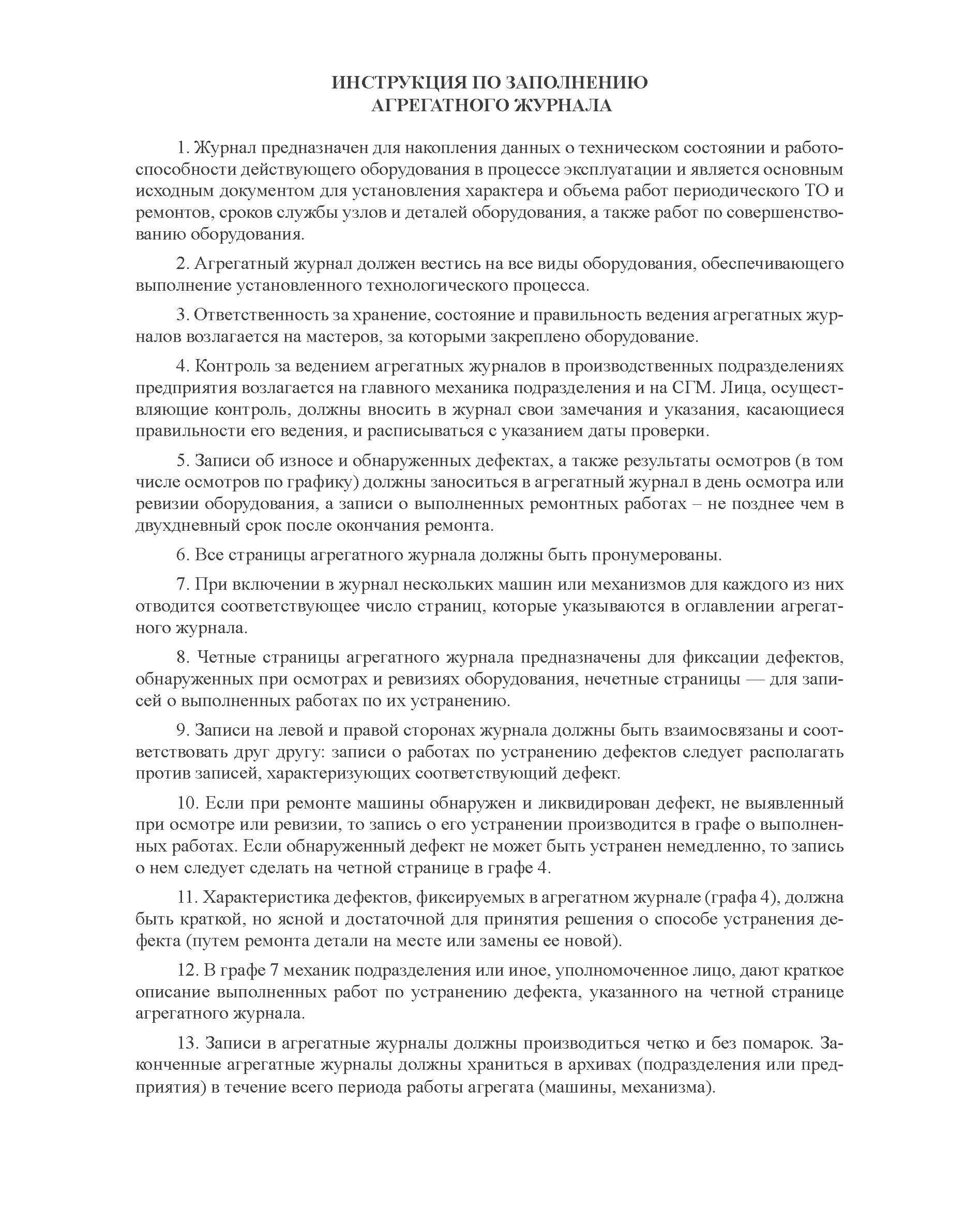 Агрегатный журнал должен вестись на все виды оборудования, обеспечивающего выполнение установленного технологического процесса.