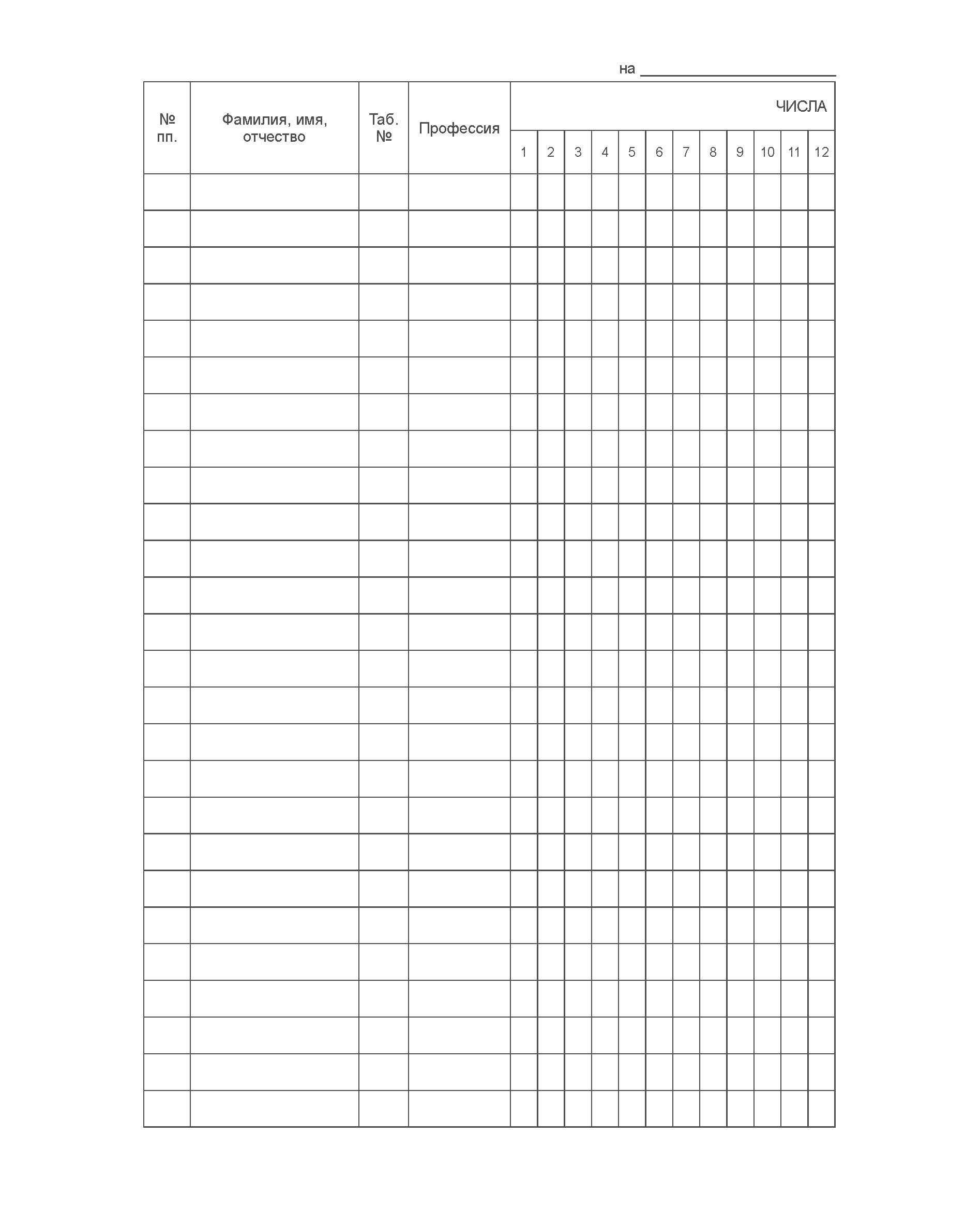 Табель учета рабочего времени (100 страниц, прошит)