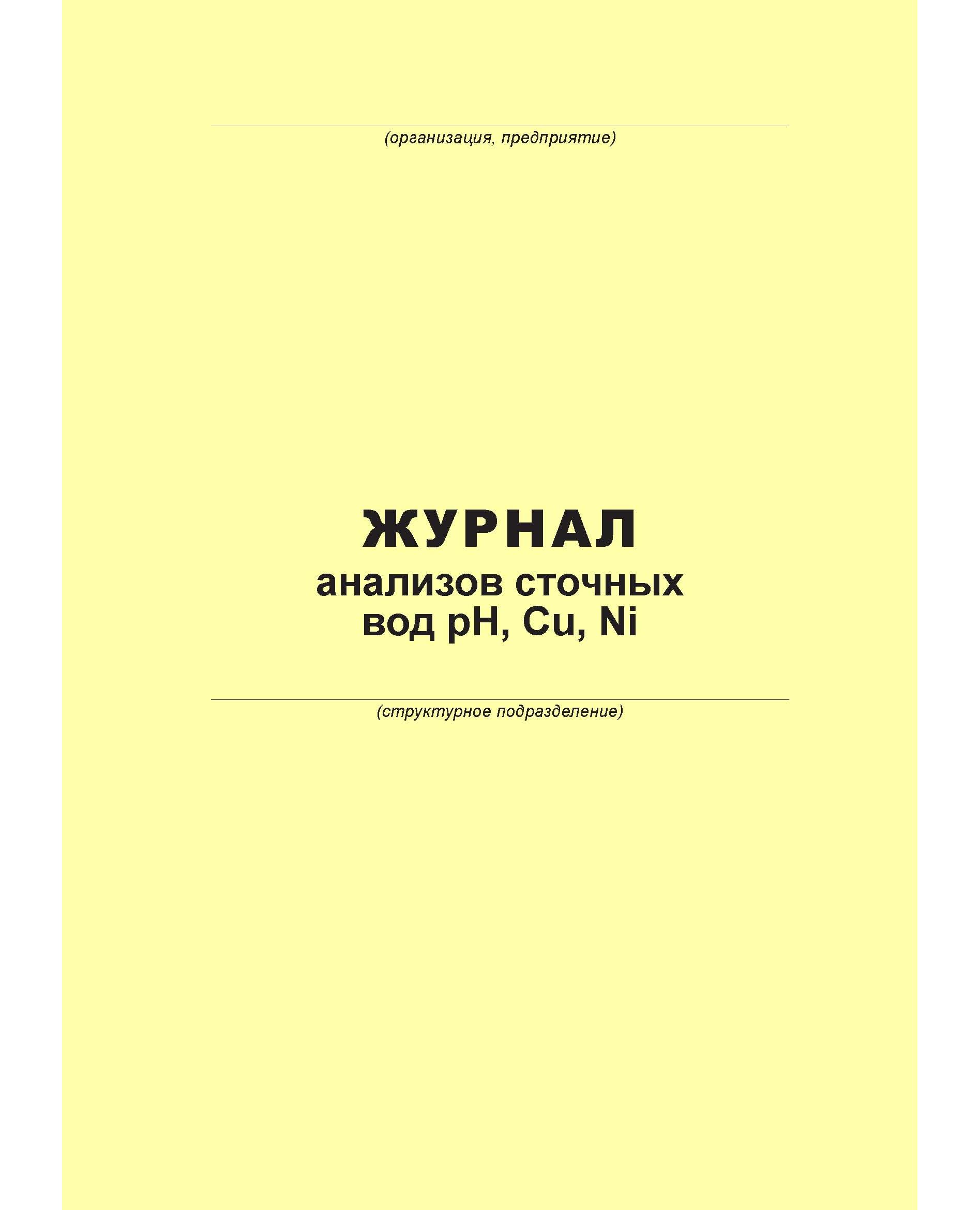 Журнал анализов сточных вод pH, Cu, Ni (100 страниц, прошит)