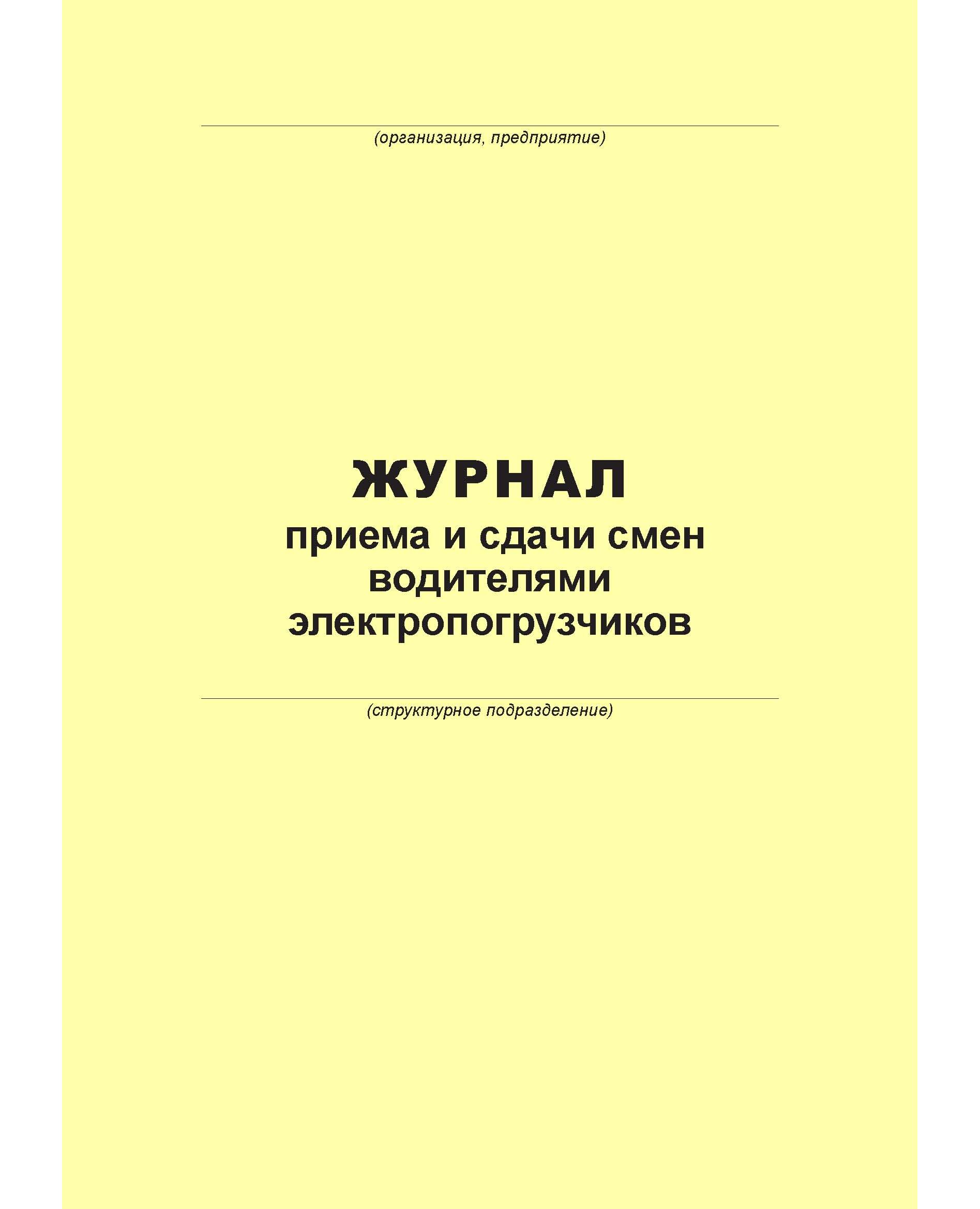 Журнал приема и сдачи смен водителями электропогрузчиков (100 страниц, прошит)