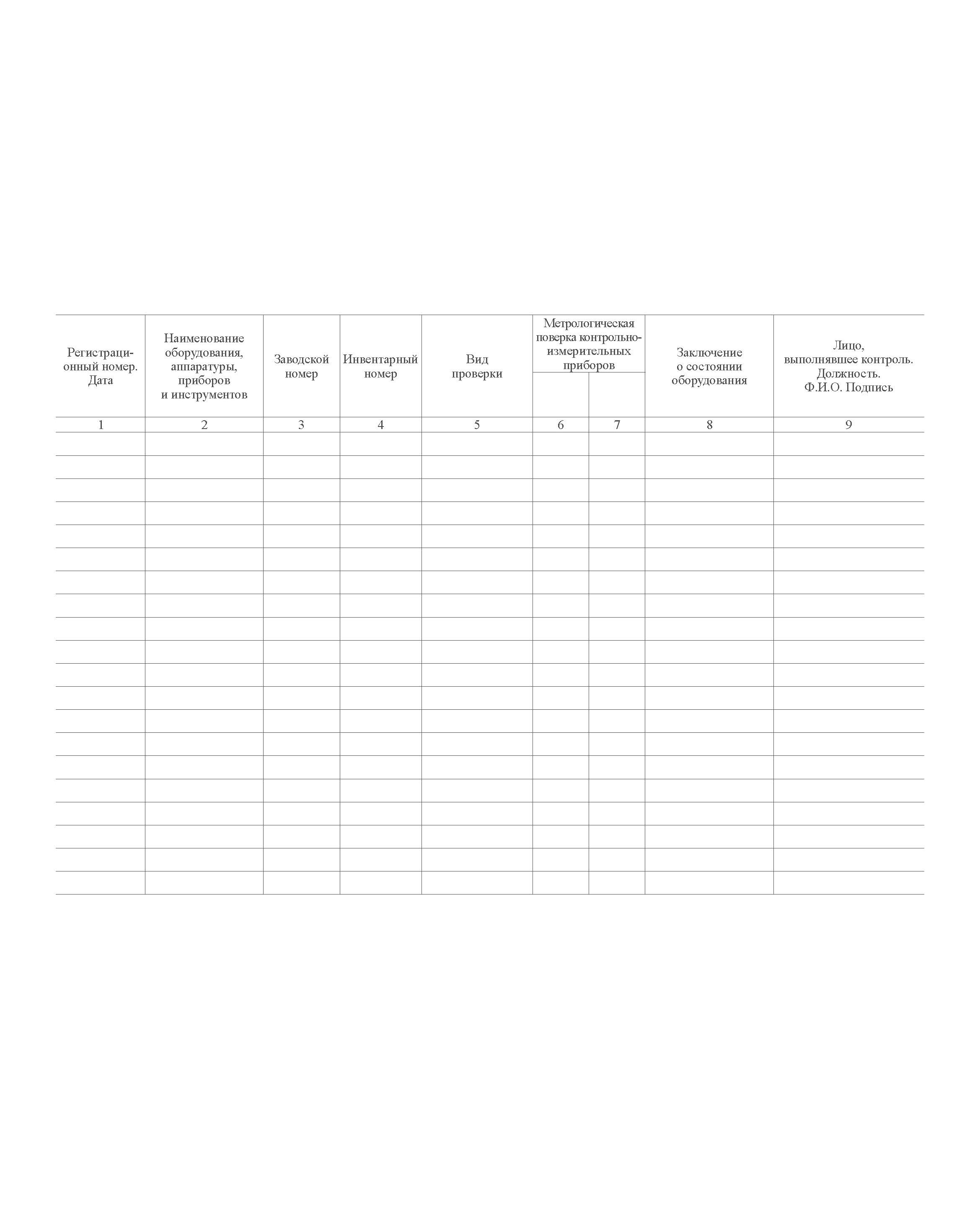 Журнал учета проверки состояния сварочного и термического оборудования, контрольно-измерительных приборов и аппаратуры имеет графы: