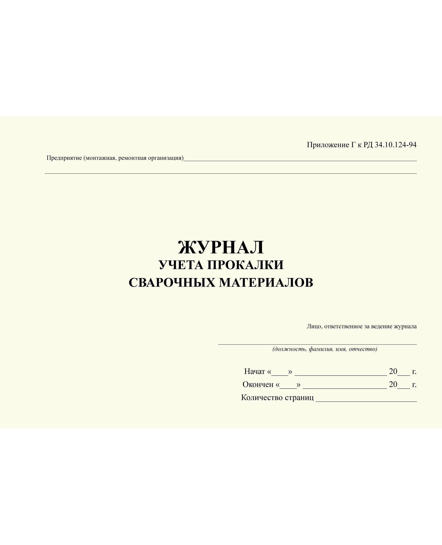 Журнал учета прокалки сварочных материалов. Приложение Г к РД 34.10.124-94 (прошитый, 100 страниц)